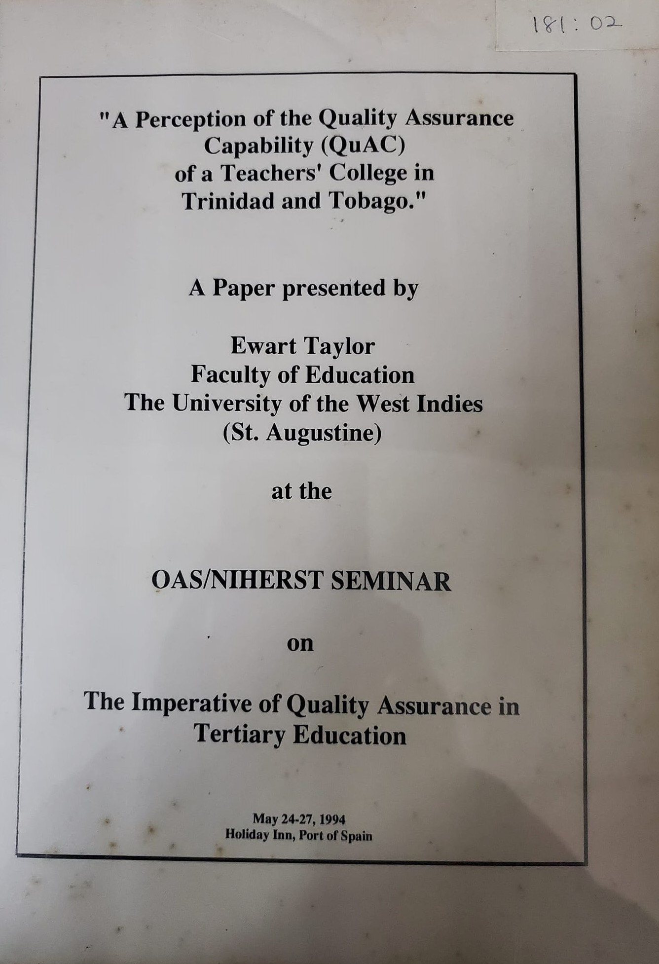 A Perception of the Quality Assurance Capability (QuAC) of a Teachers' College in Trinidad and Tobago