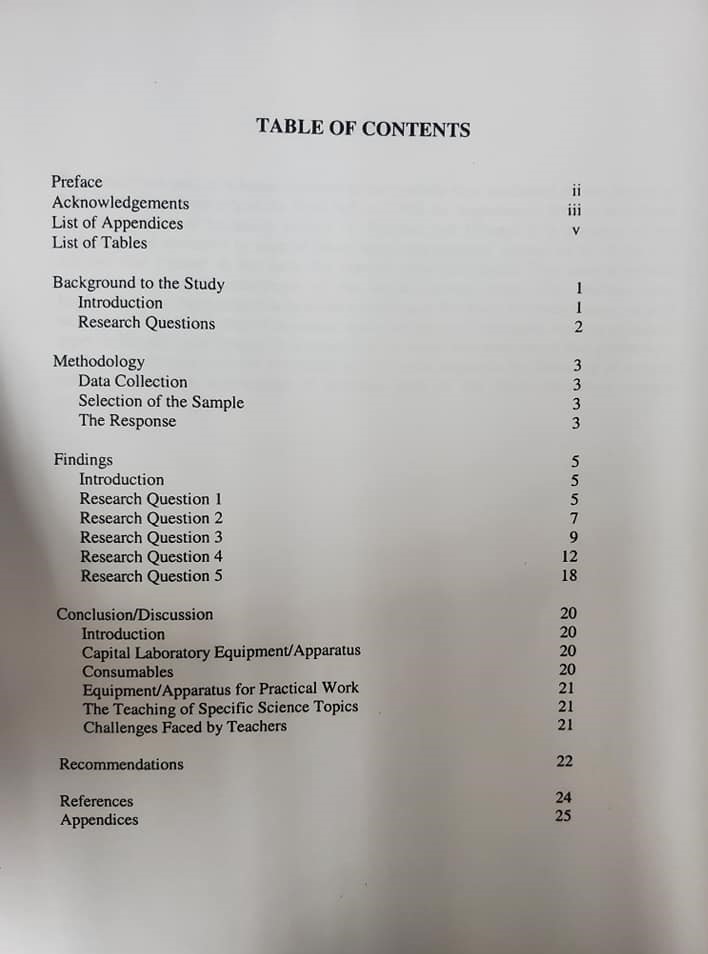 This is a summary of the results of a survey of the apparatus and materials to support lower secondary science in 54 of the 115 schools that existed at the time the research was undertaken. The sample reflects approximately equal percentages of the various school types. The study sought to obtain an overall picture of the availability and adequacy of resources to support practical work, and to obtain some information about the challenges or problems faced by lower secondary science teachers in their attempts to use or access resources for practical work.