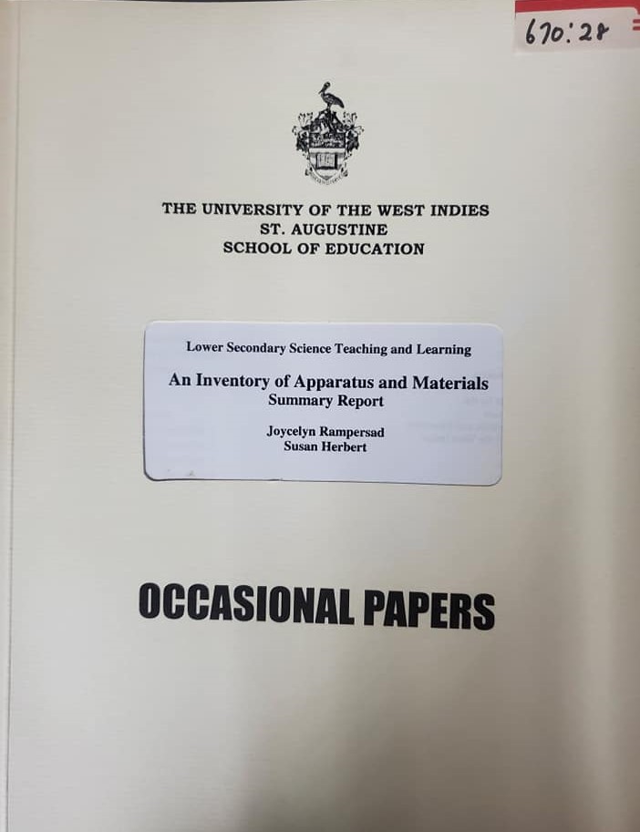 | dc.relation.ispartofseries | School of Education. Faculty of Humanities and Education, UWI, St. Augustine. Ocassional Papers | |