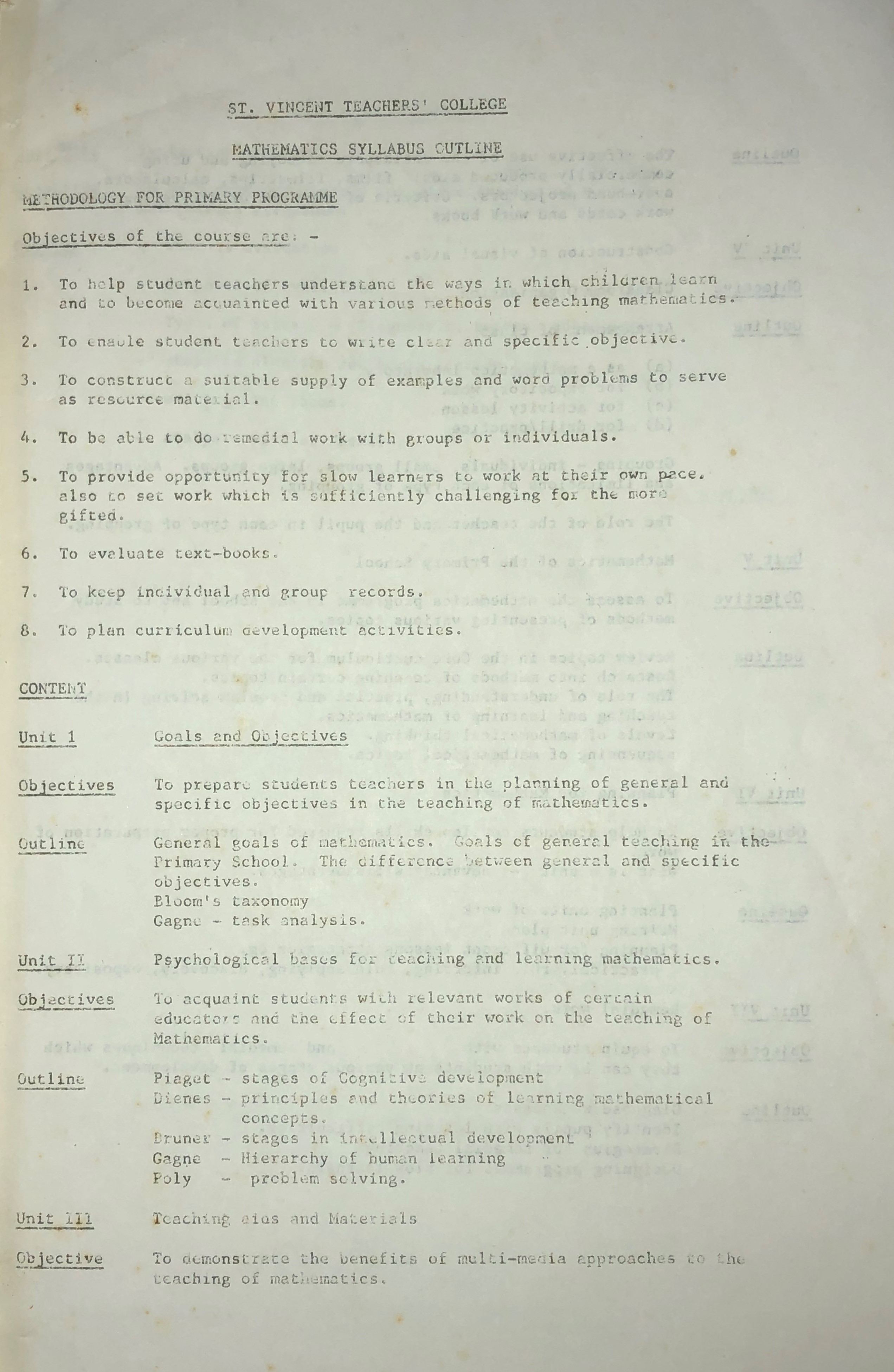 St. Vincent Teachers' College Syllabus: Section 1: Mathematics, English Language, Science, Social Studies, Education