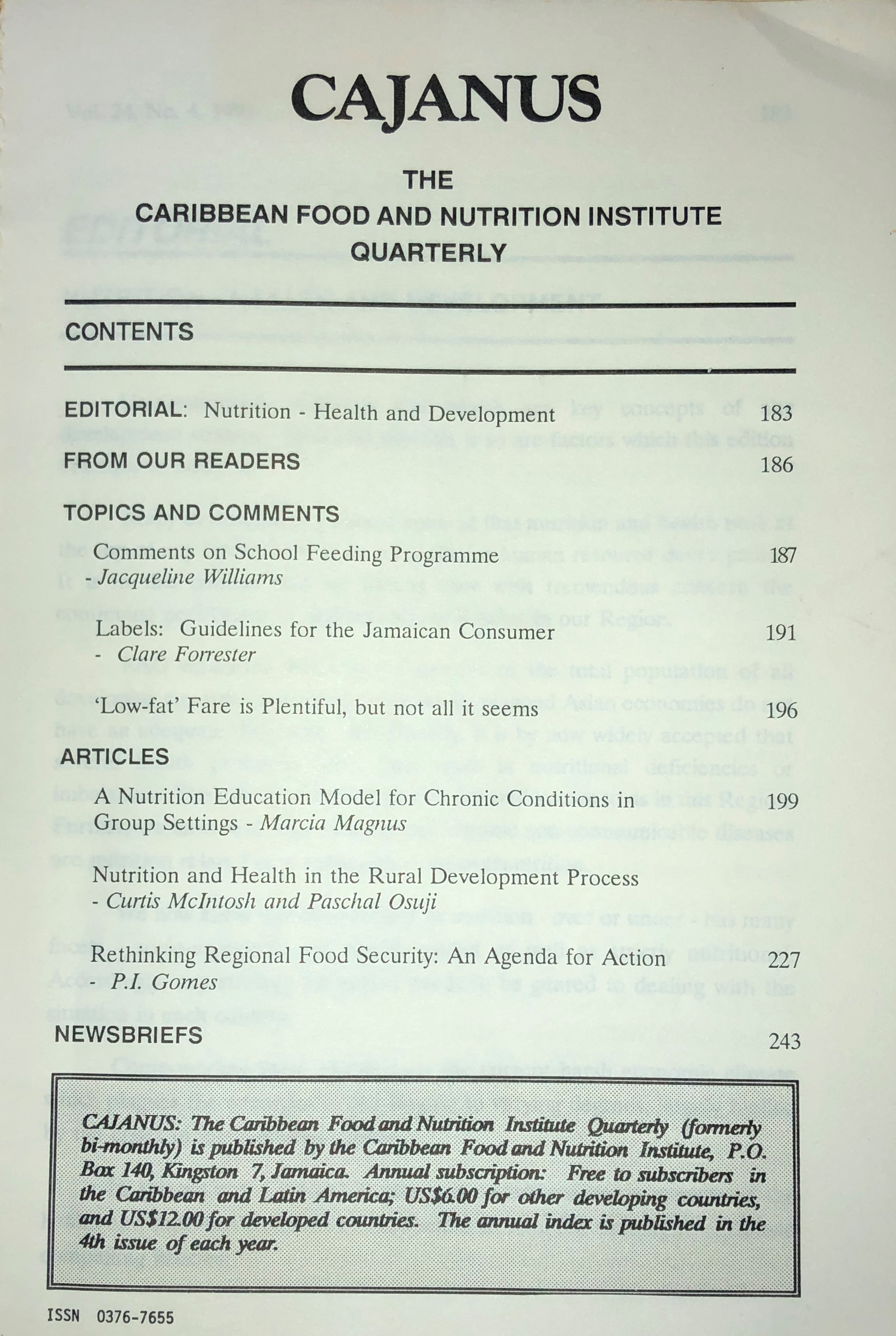Cajanus: The Caribbean Food & Nutrition Institute Quarterly