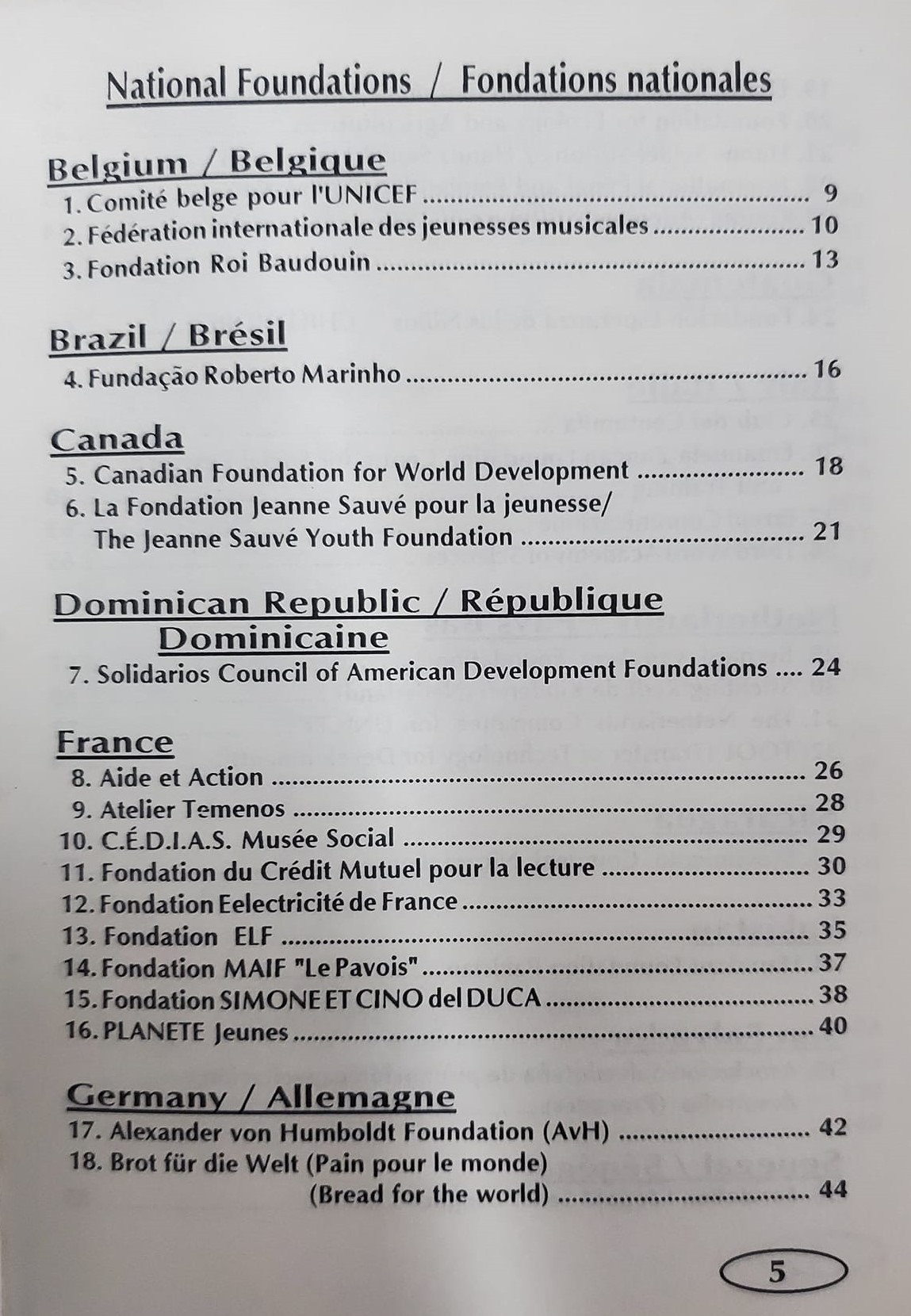 World directory to foundations/Repertoire mondial de fondations