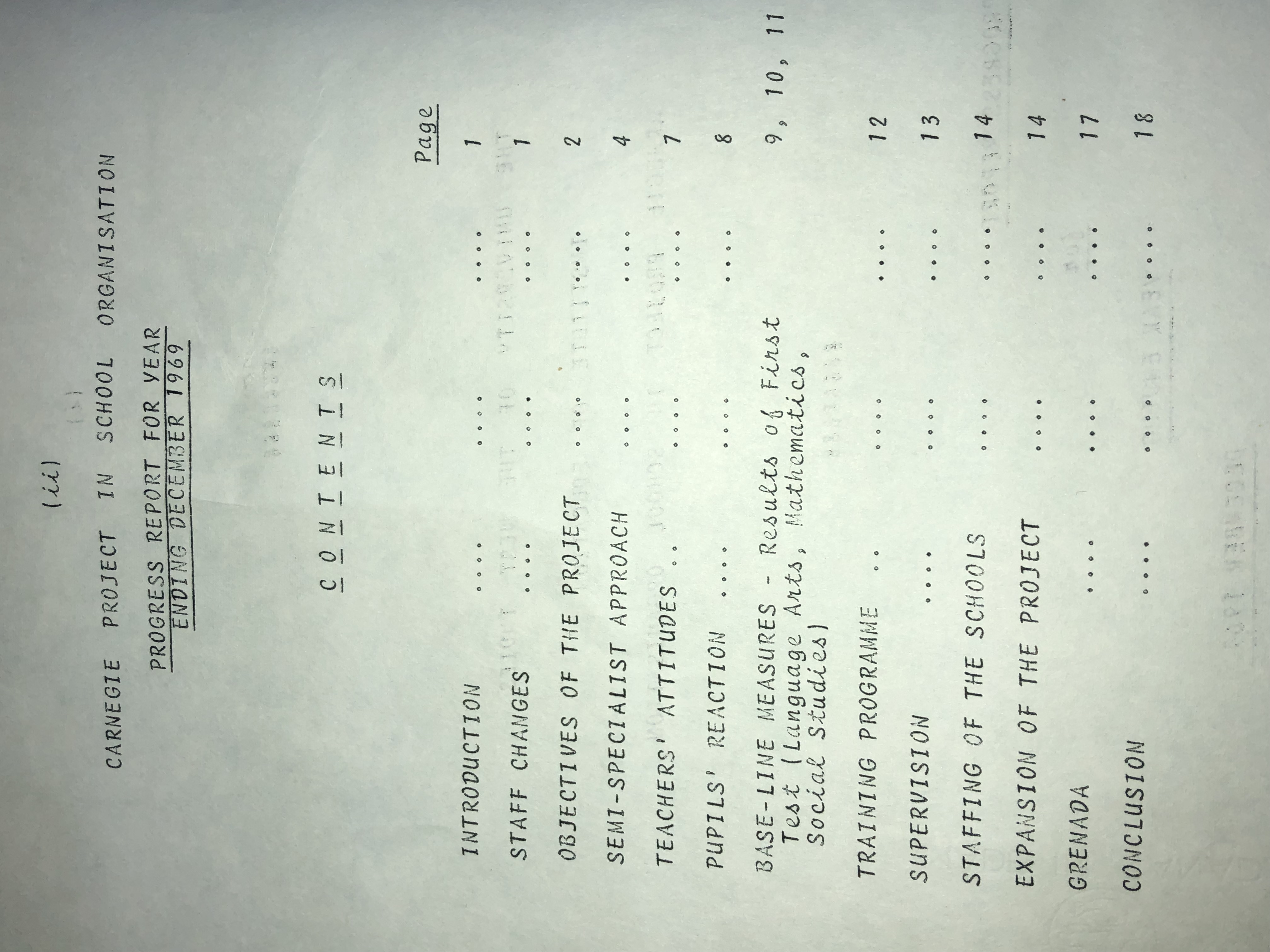 This paper is primarily concerned with the operation of the Carnegie Project in Trinidad. It 1) analyses the Caribbean Plan, 2) describes the research design and procedures, 3) describes the servicing of the project, 4) provides a tentative evaluation, and examines the implications of the project. A brief description of the implementation of the project in Grenada is included.