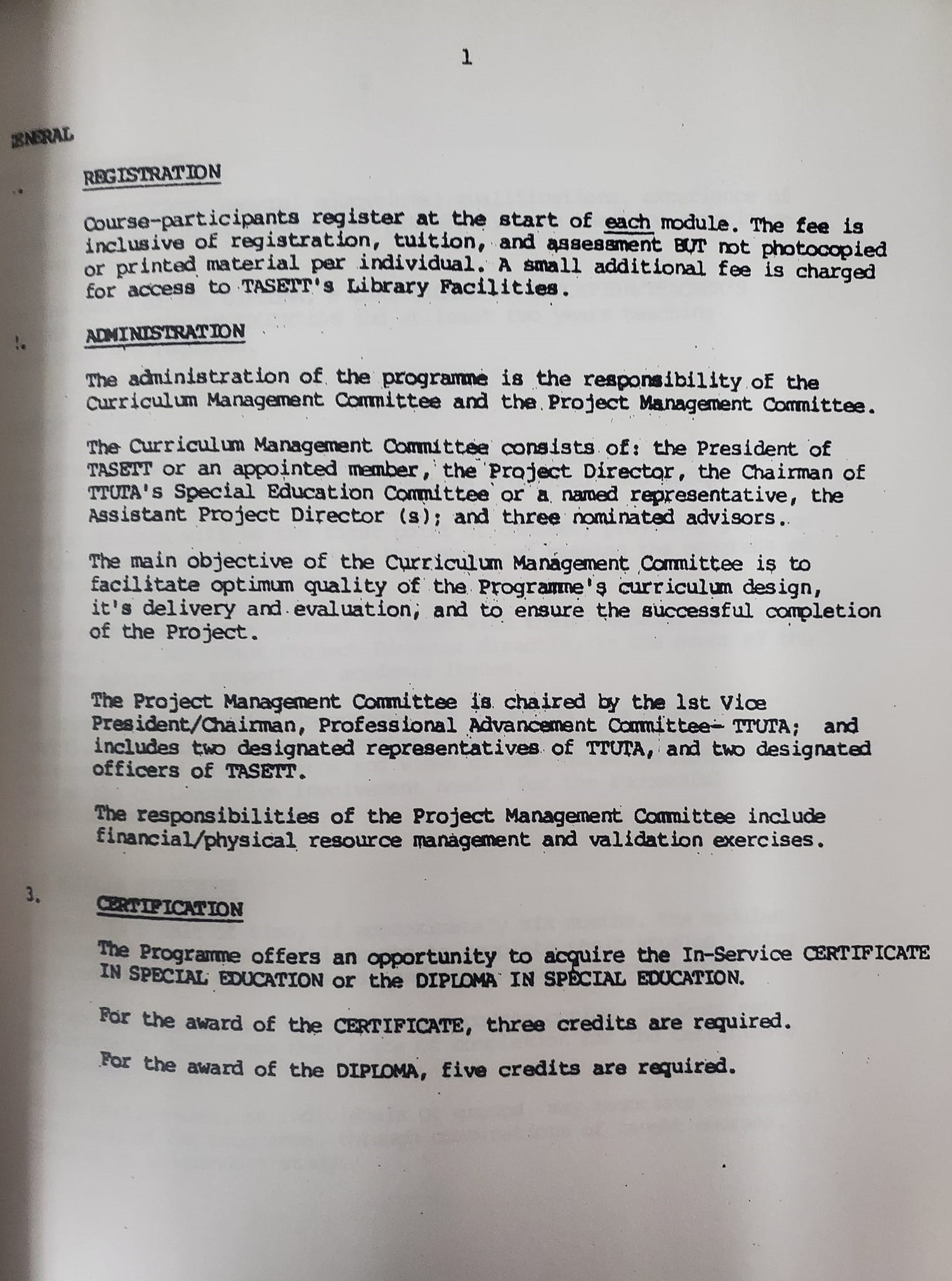 Professional Studies Programme 1989-1992: In-Service Certificate in Education - Special Education: Diploma in Education - Special Education