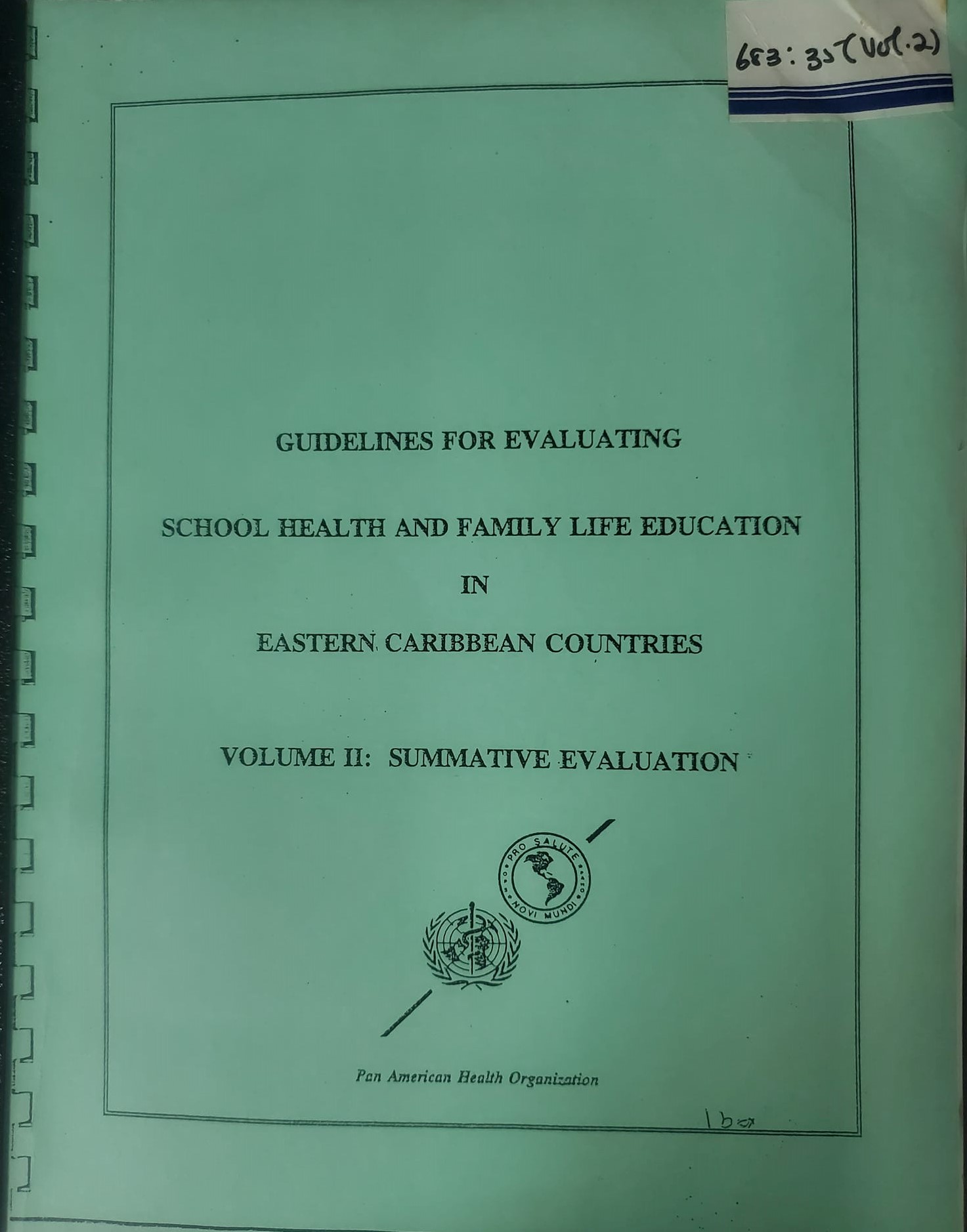 Prepared under the School Health and Family Life Education Project jointly sponsored by the Carnegie Corporation of New York and the Pan American Health Organization (Office of the Caribbean Program Coordinator) Volume 1 - Formative Evaluation and Volume 2 - Summative Evaluation