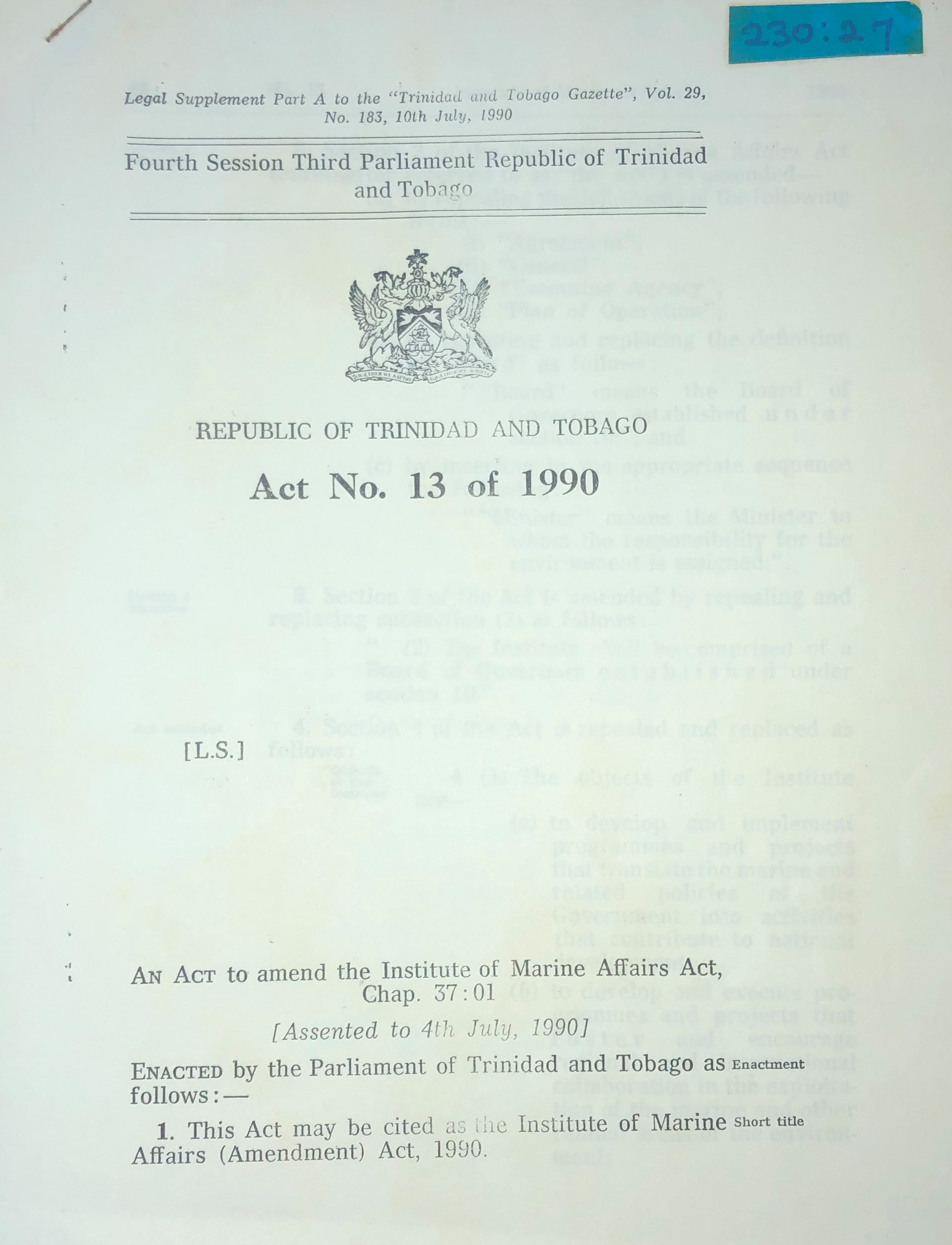 "An Act to amend the Institute of Marine Affairs Act, Chap. 37:01"