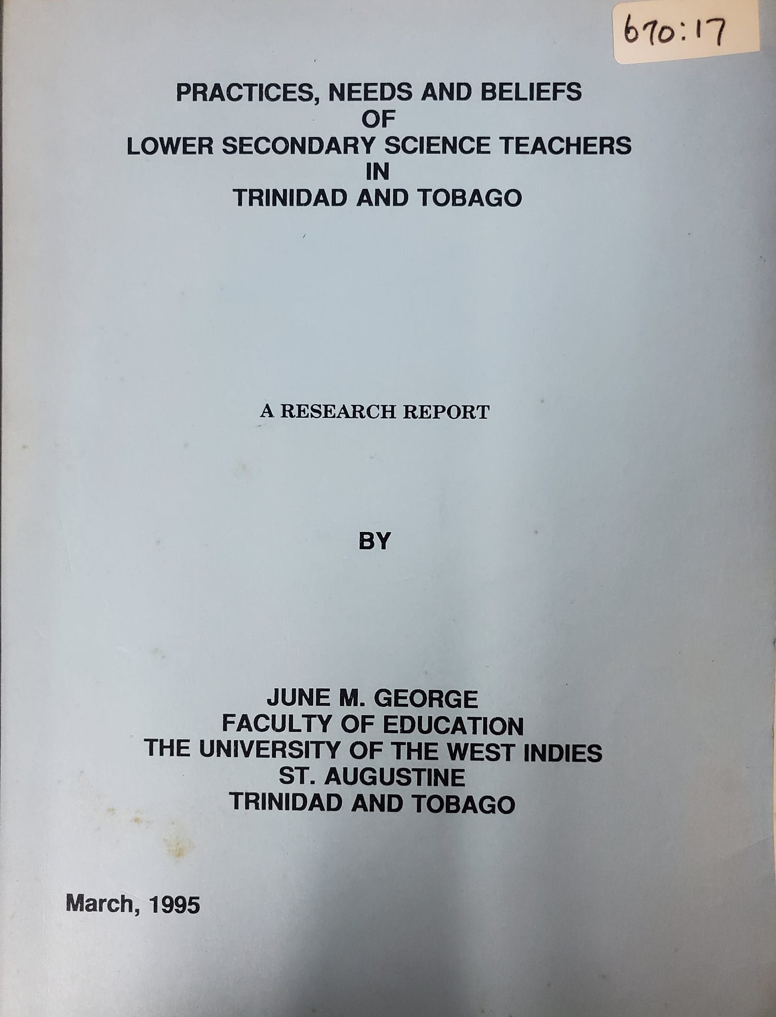 Practices, needs and beliefs of lower secondary science teachers in Trinidad and Tobago: A research report