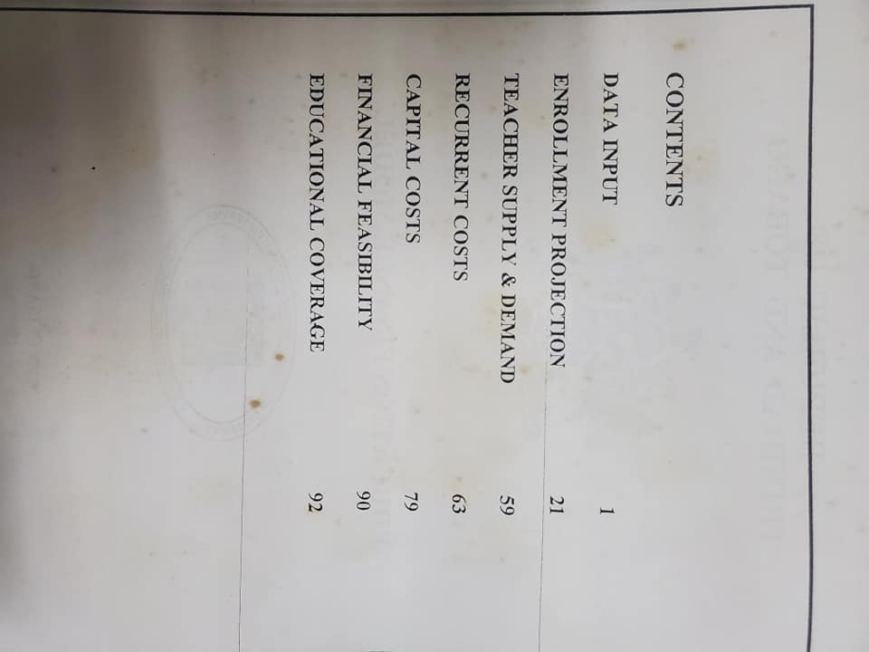 This is an educational finance and cost model for Trinidad and Tobago. The structure of the model is as follows: 1) Data input (Parameters and assumptions); 2) Component 1: enrolment projection; 3) Component 2: Teacher supply and demand; 4) Component 3: Projection of recurrent costs of education; 5) Component 4: Projection of capital costs of education; 6) Component 5: Financial feasibility of educational spending; and 7) Component 6: Educational coverage (GER).