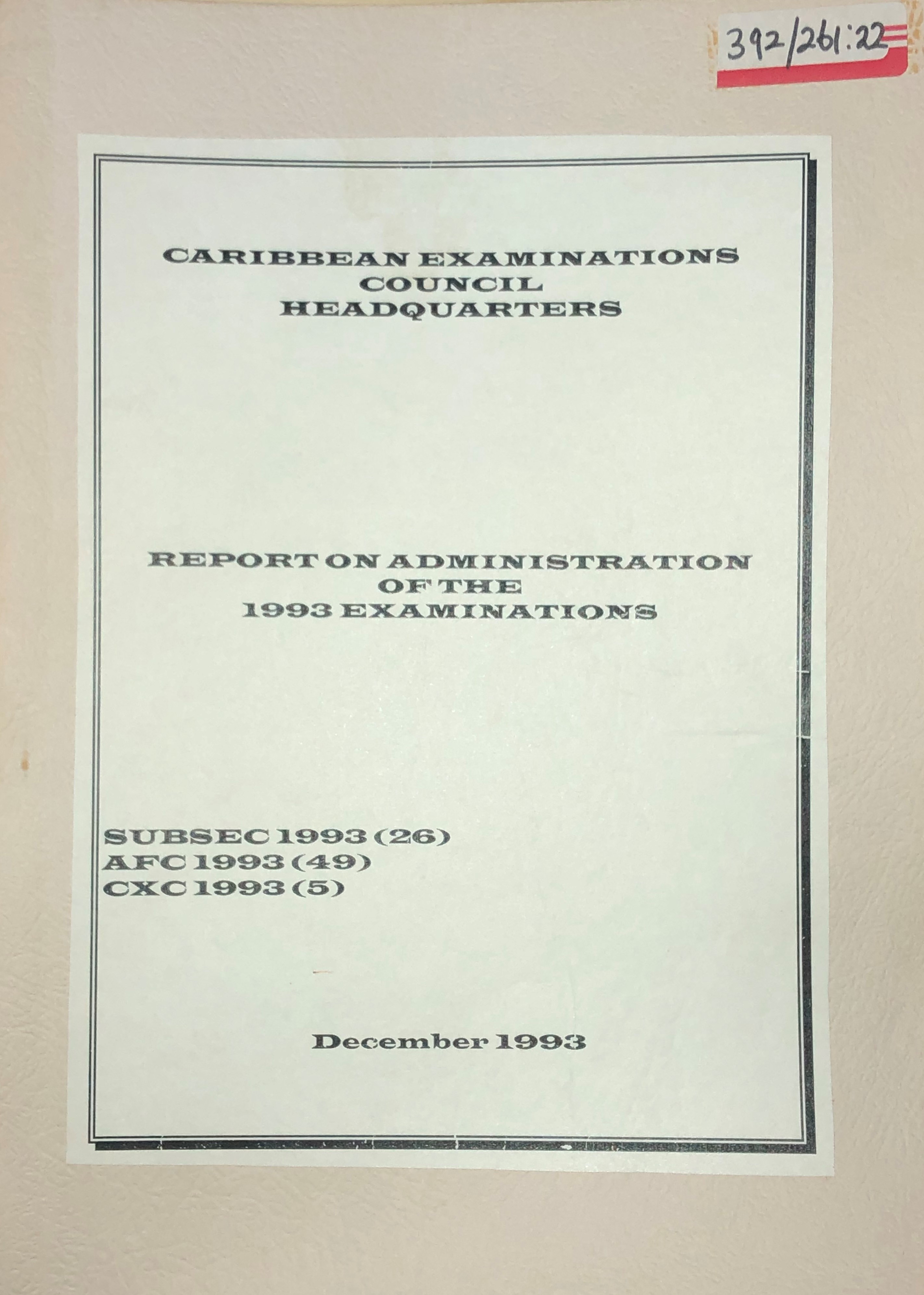 Report on Administration of the 1993 Examinations