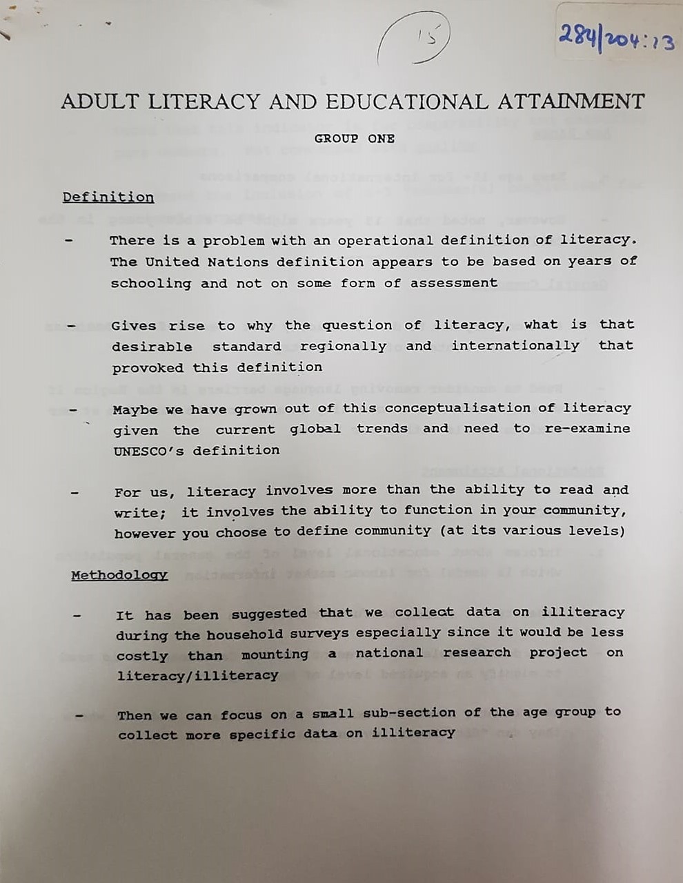 The comments of the working group that considered the indicators of adult literacy and educational attainment are presented in this report.