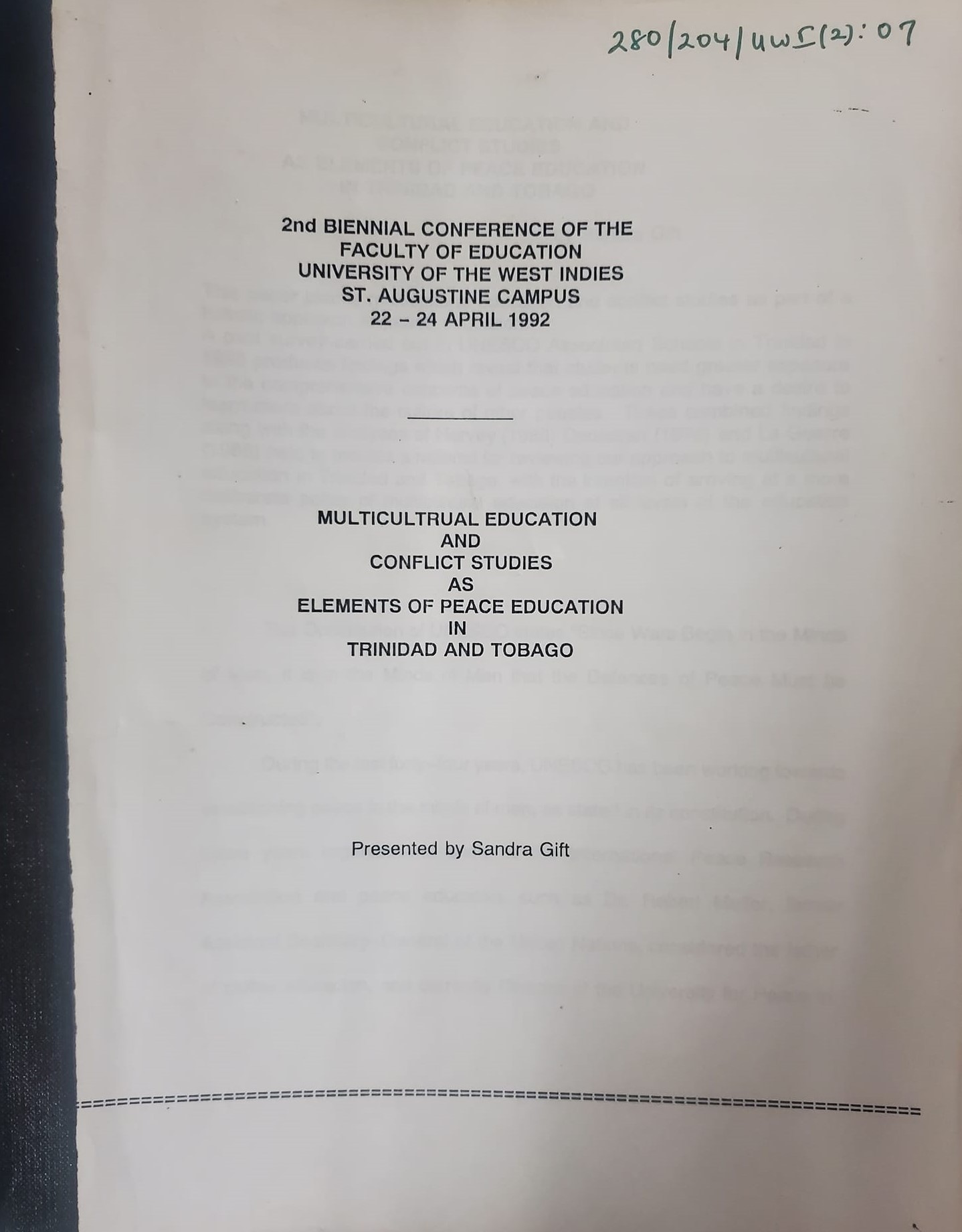 Multicultural education and conflict studies as elements of peace education in Trinidad and Tobago