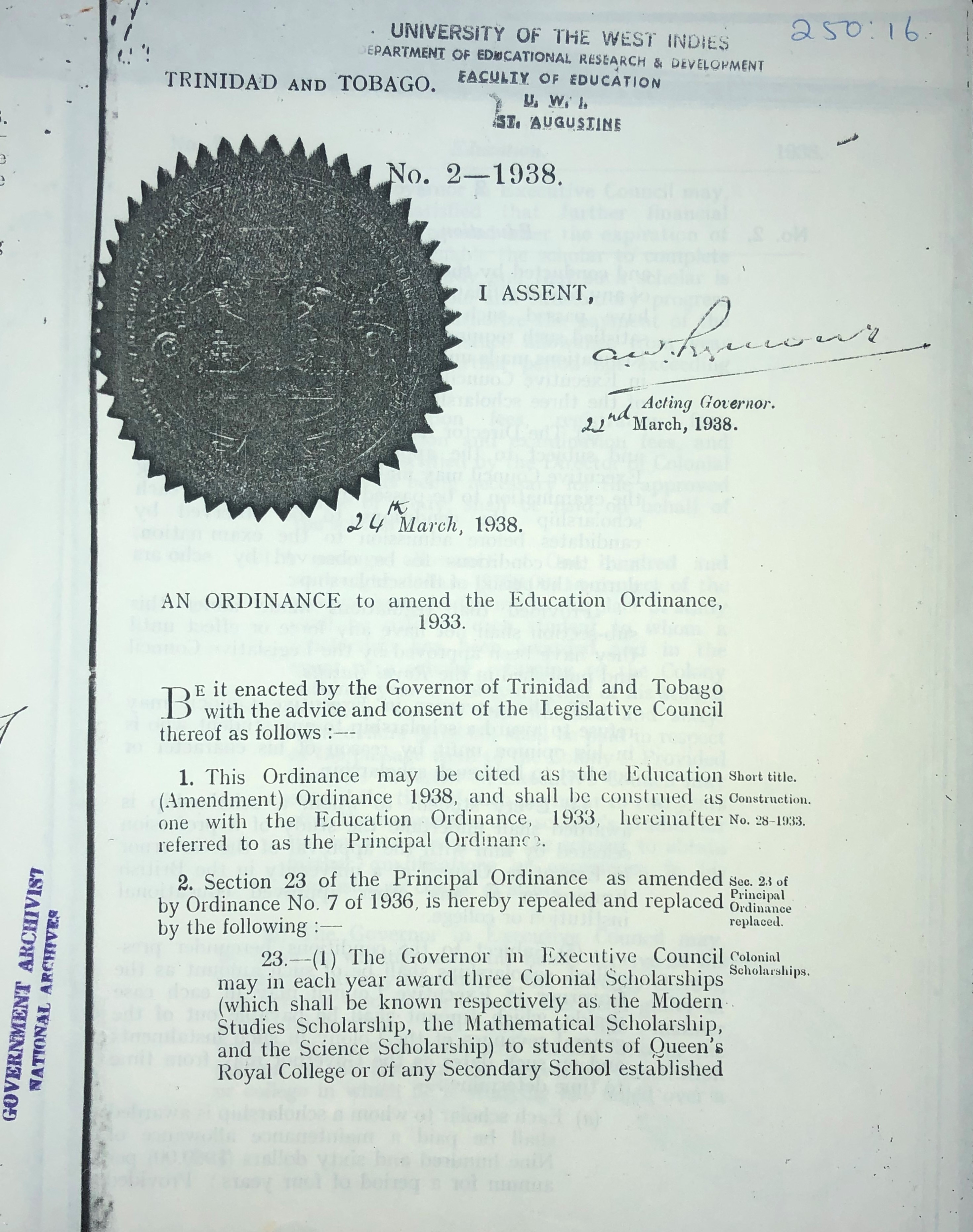 "An ordinance to amend the Education Ordinance, 1933"