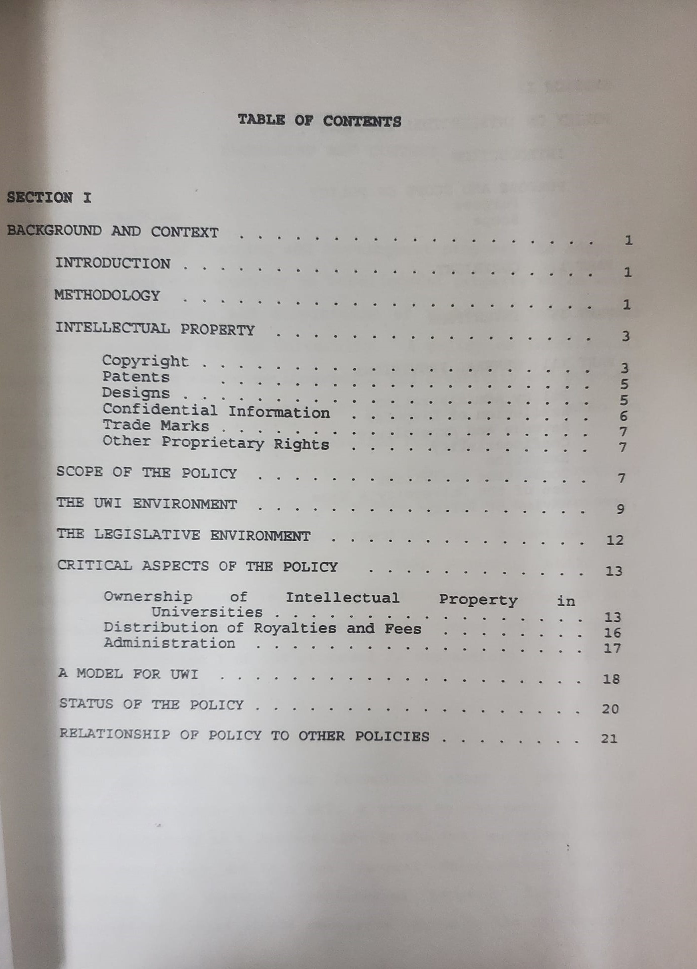 Proposal: A Policy on Intellectual Property for The University of the West Indies