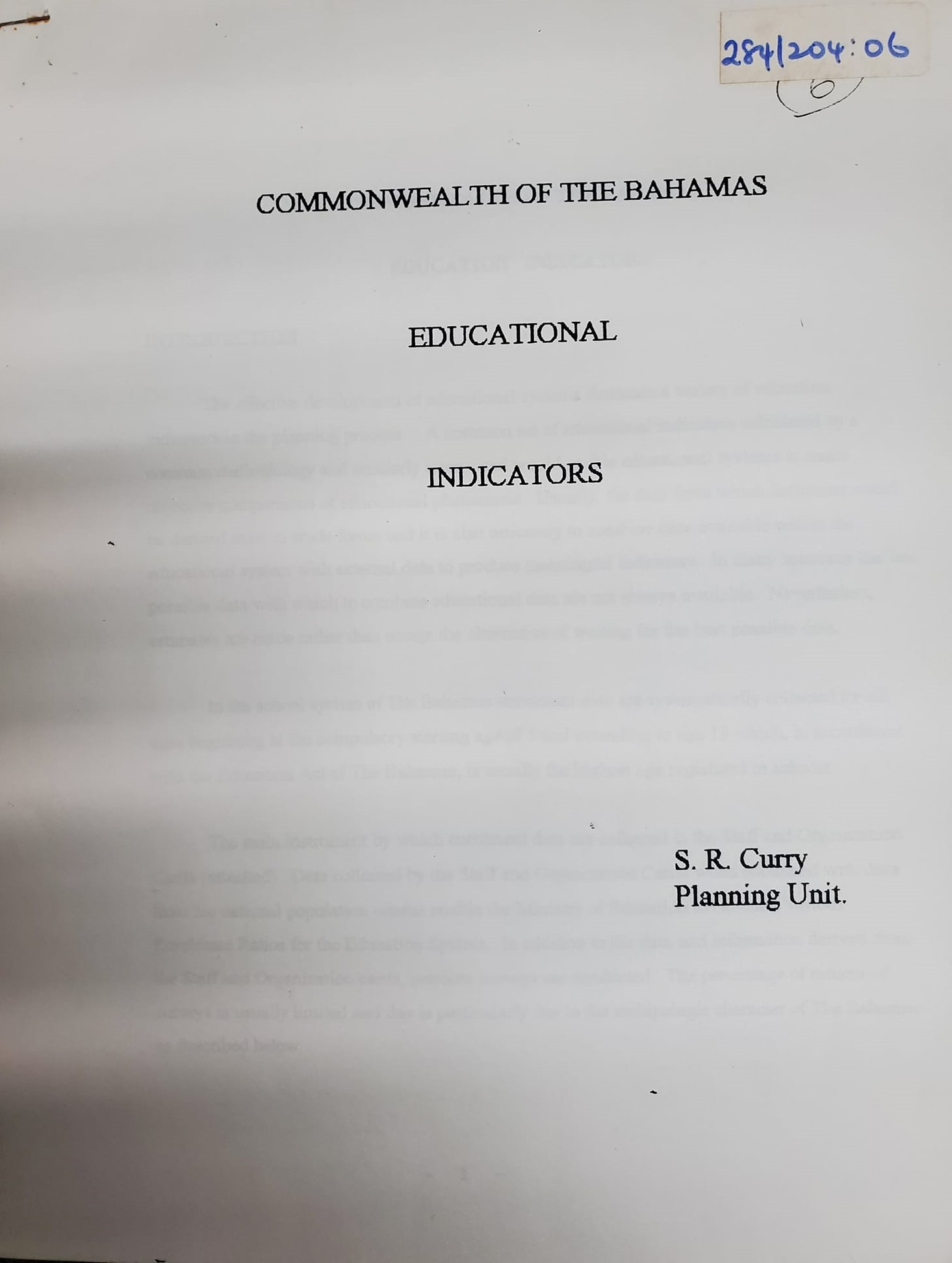 This paper provides information on the education system in the Bahamas and indicators of educational development in the country.