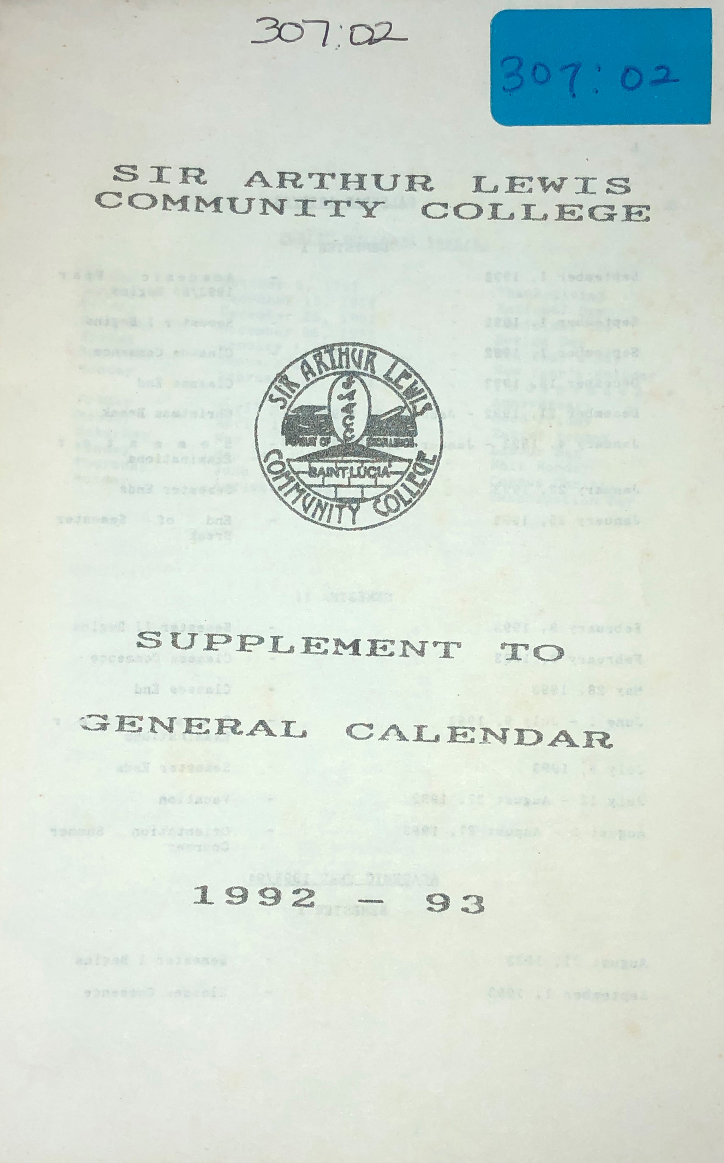 Sir Arthur Lewis Community College: Supplement to General Calendar 1992-93