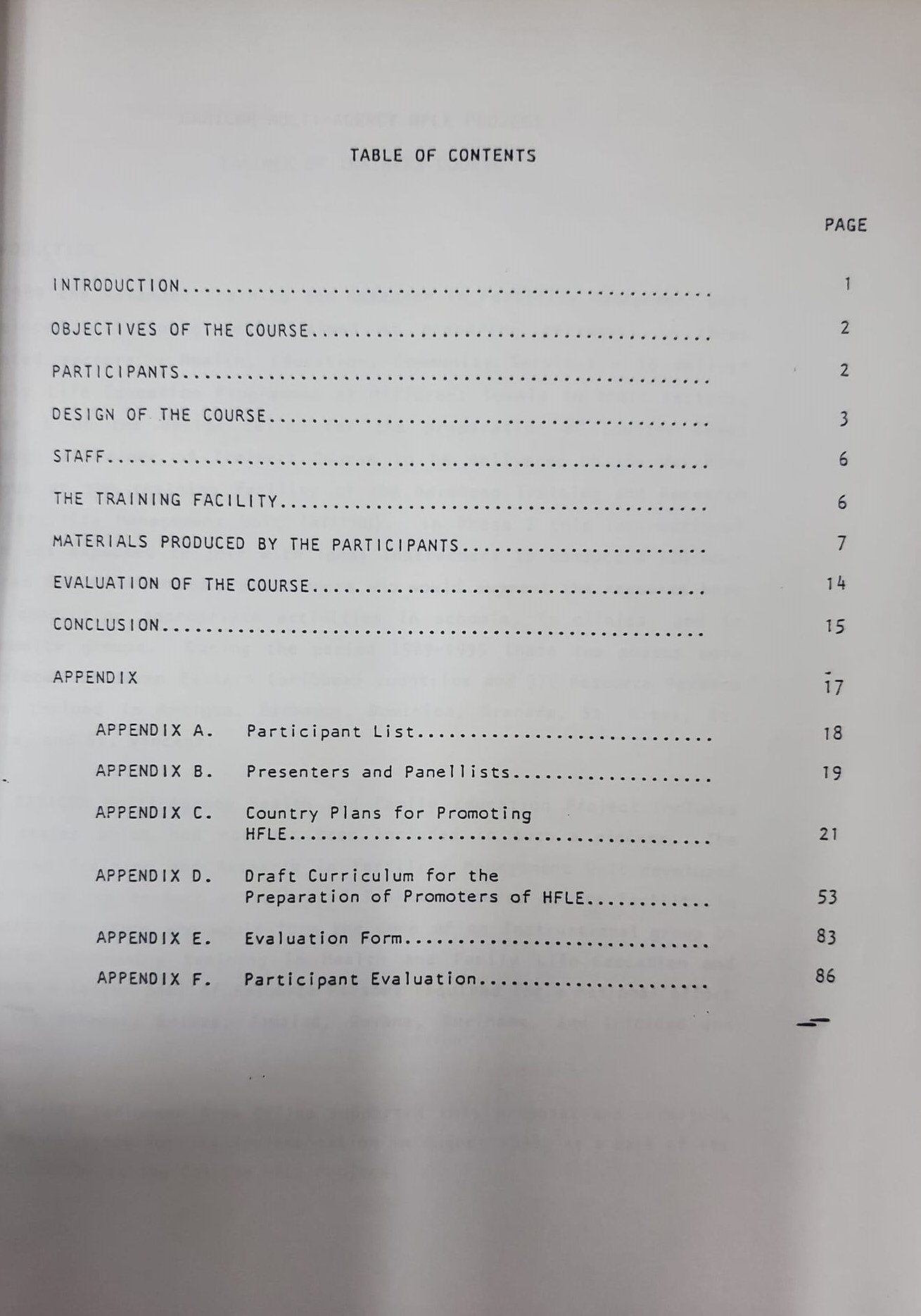 CARICOM Multi-Agency Health Family Life Education Project: Report of the Trainer of Trainers Course August 5-30, 1996