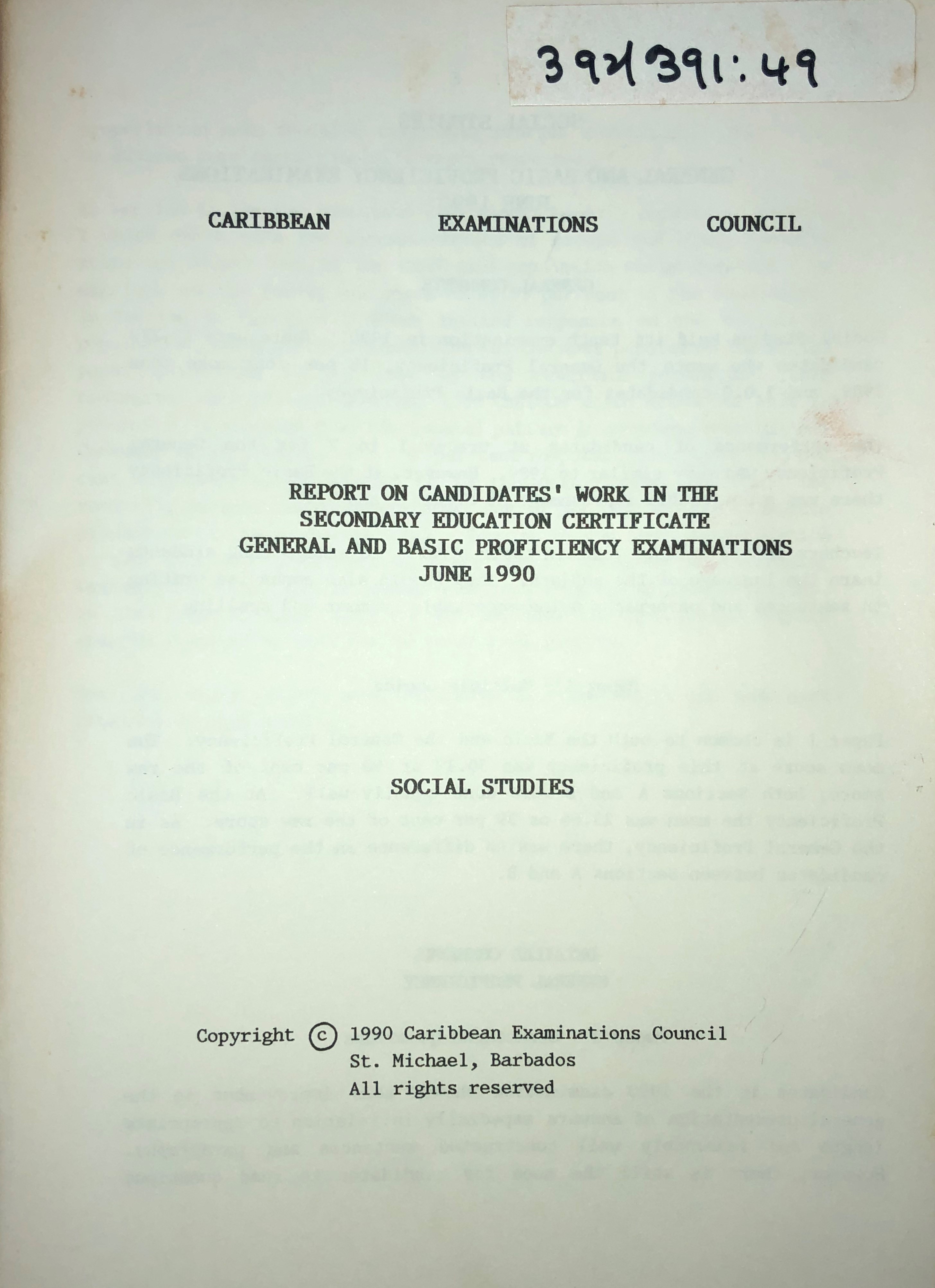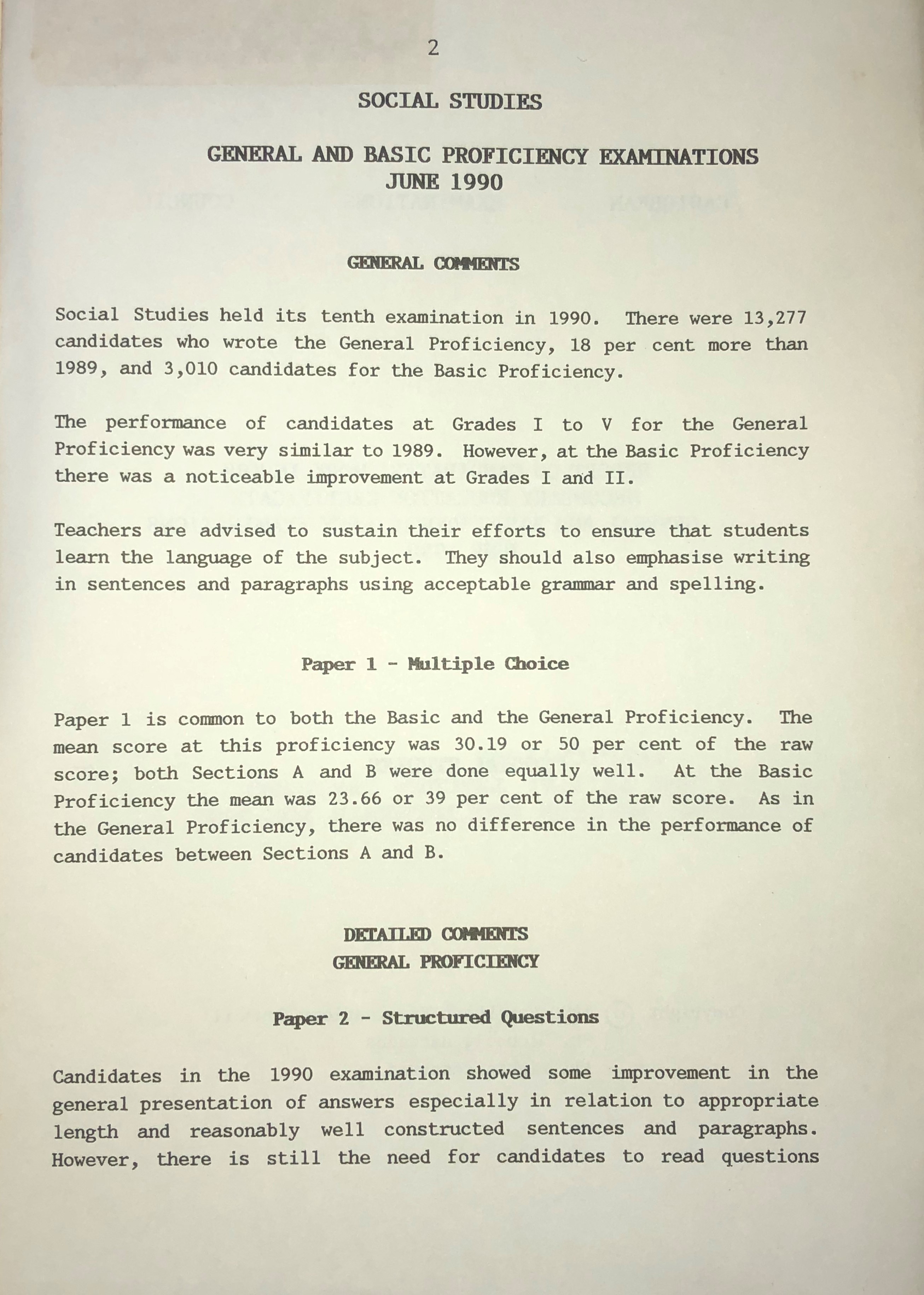 Report on Candidates' Work in the Secondary Education Certificate General and Basic Proficiency Examinations June 1990: Social Studies