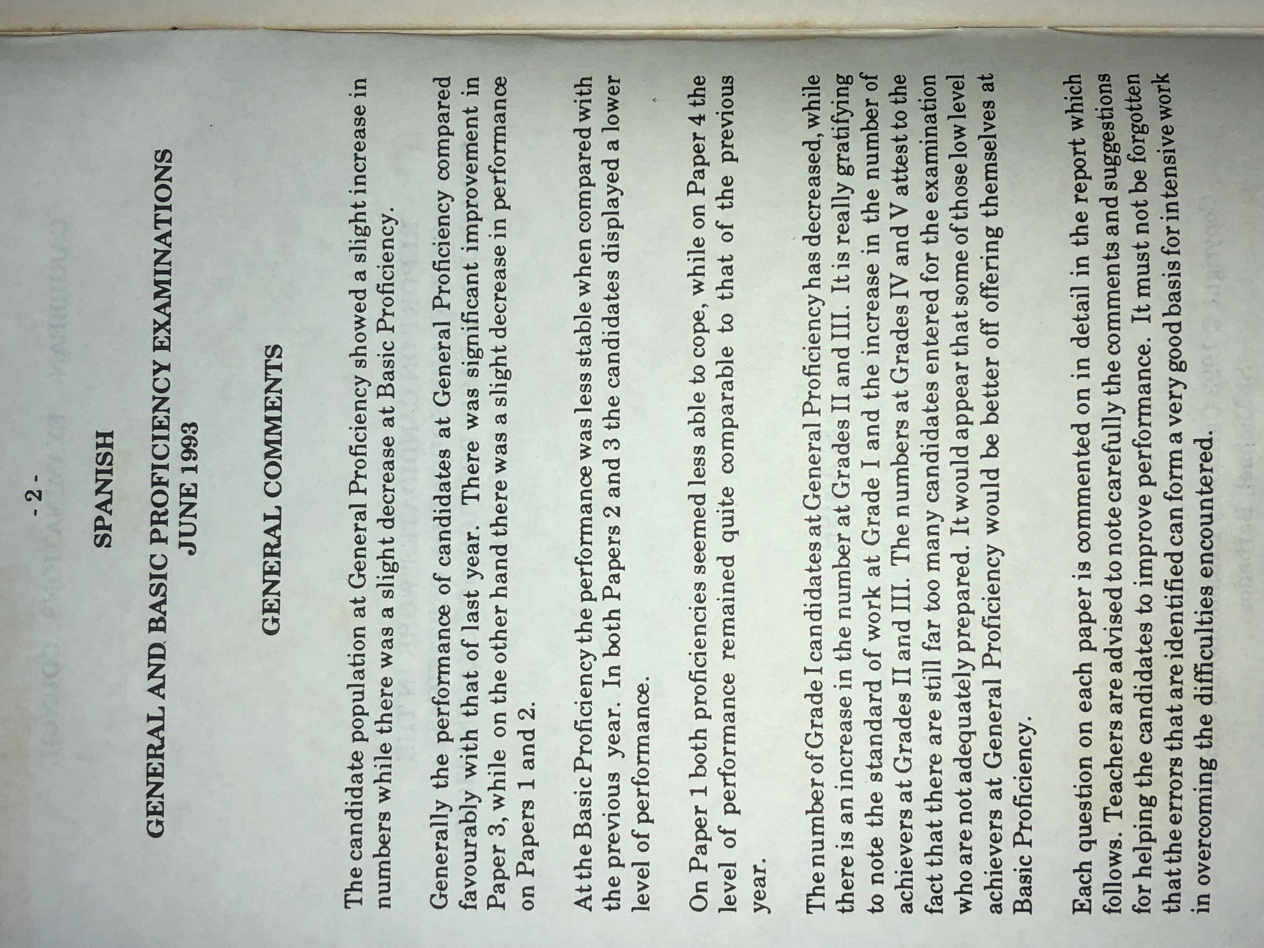 Report on Candidates' Work in the Secondary Education Certificate General and Basic Examinations June 1993: Spanish