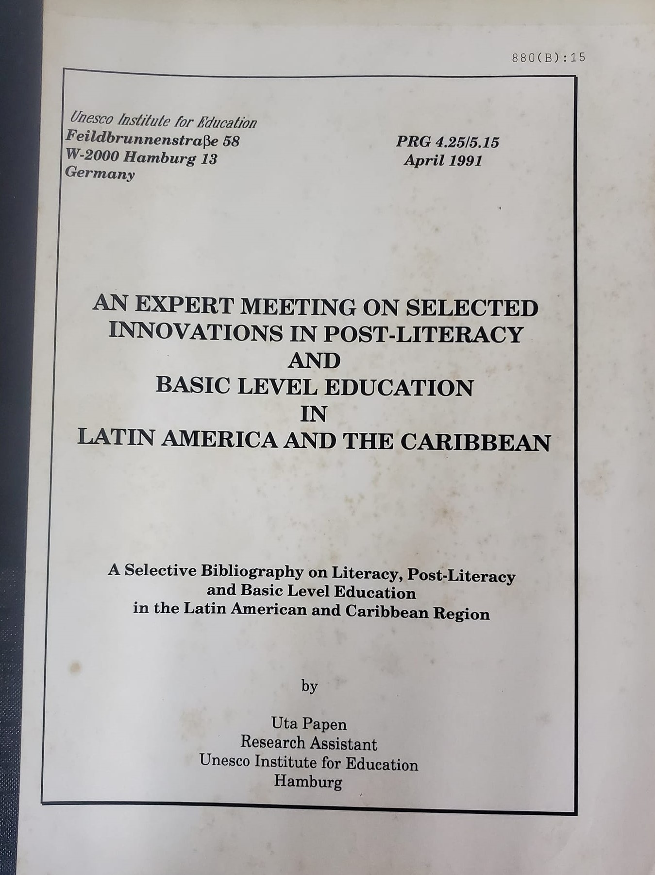 An expert meeting on selected innovations in post-literacy and basic level education in Latin America and the Caribbean: A selective bibliography in literacy, post-literacy and basic level education in the Latin American and Caribbean region