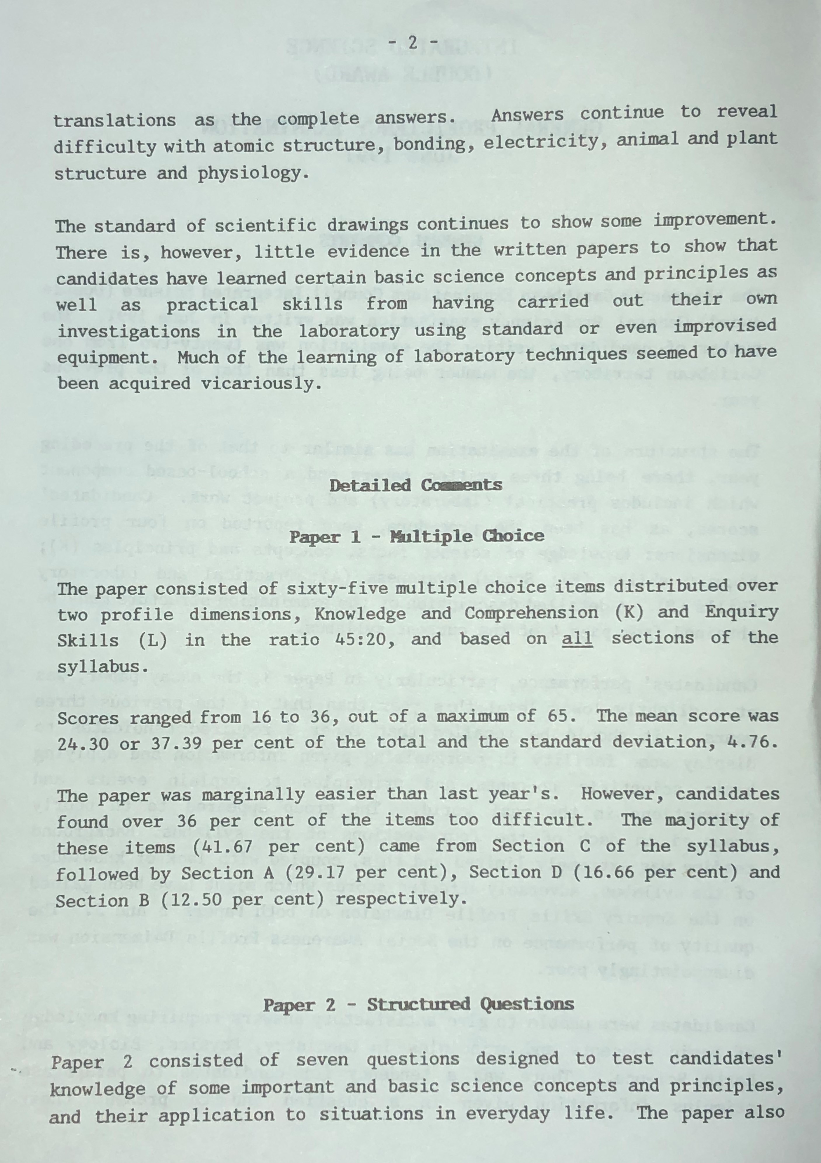 Report on Candidates' Work in the Secondary Education Certificate General Proficiency Examinations June 1991: Integrated Science (Double Award)