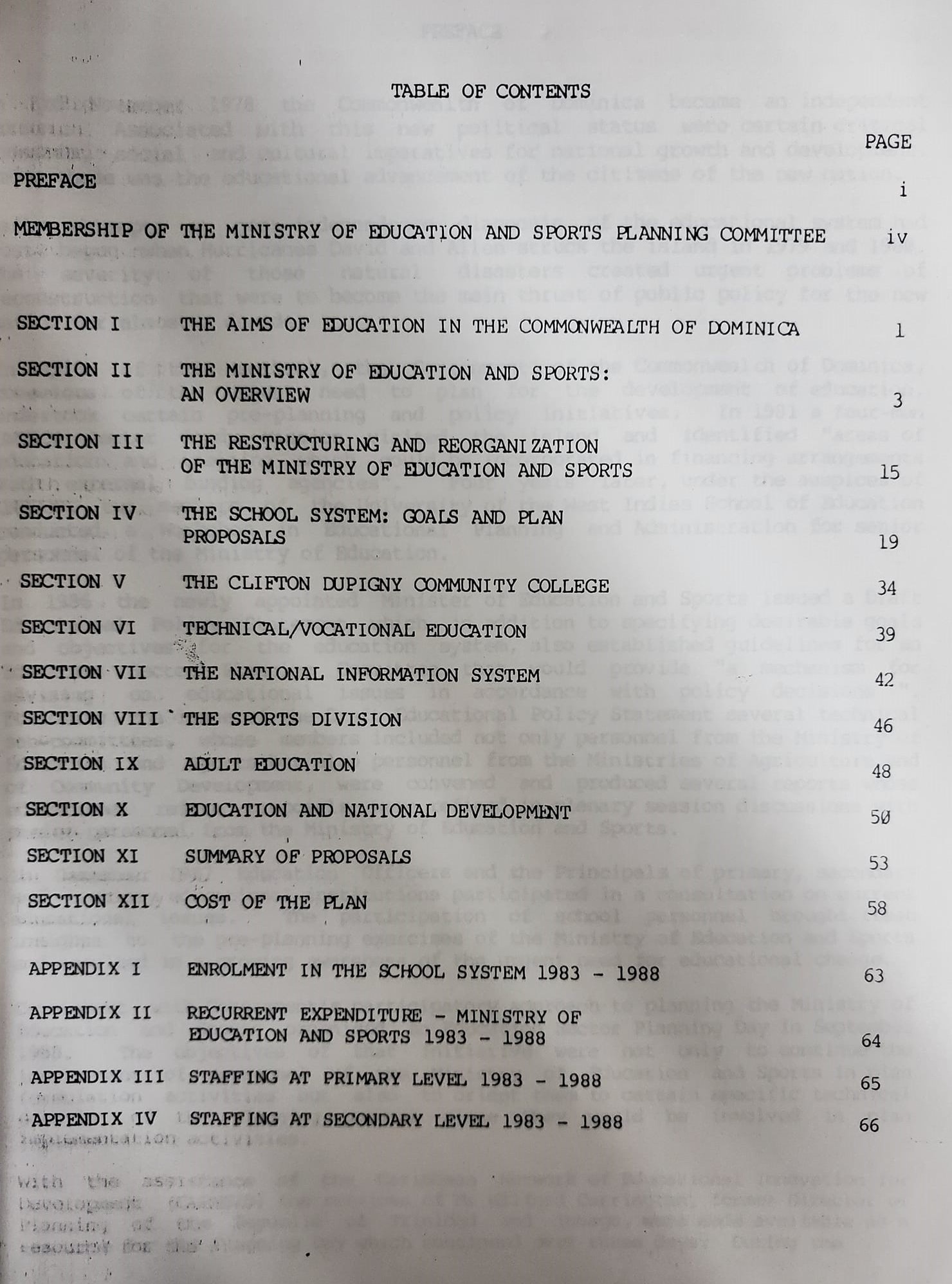 Education Sector Plan for Development in the Commonwealth of Dominica, 1989-1994
