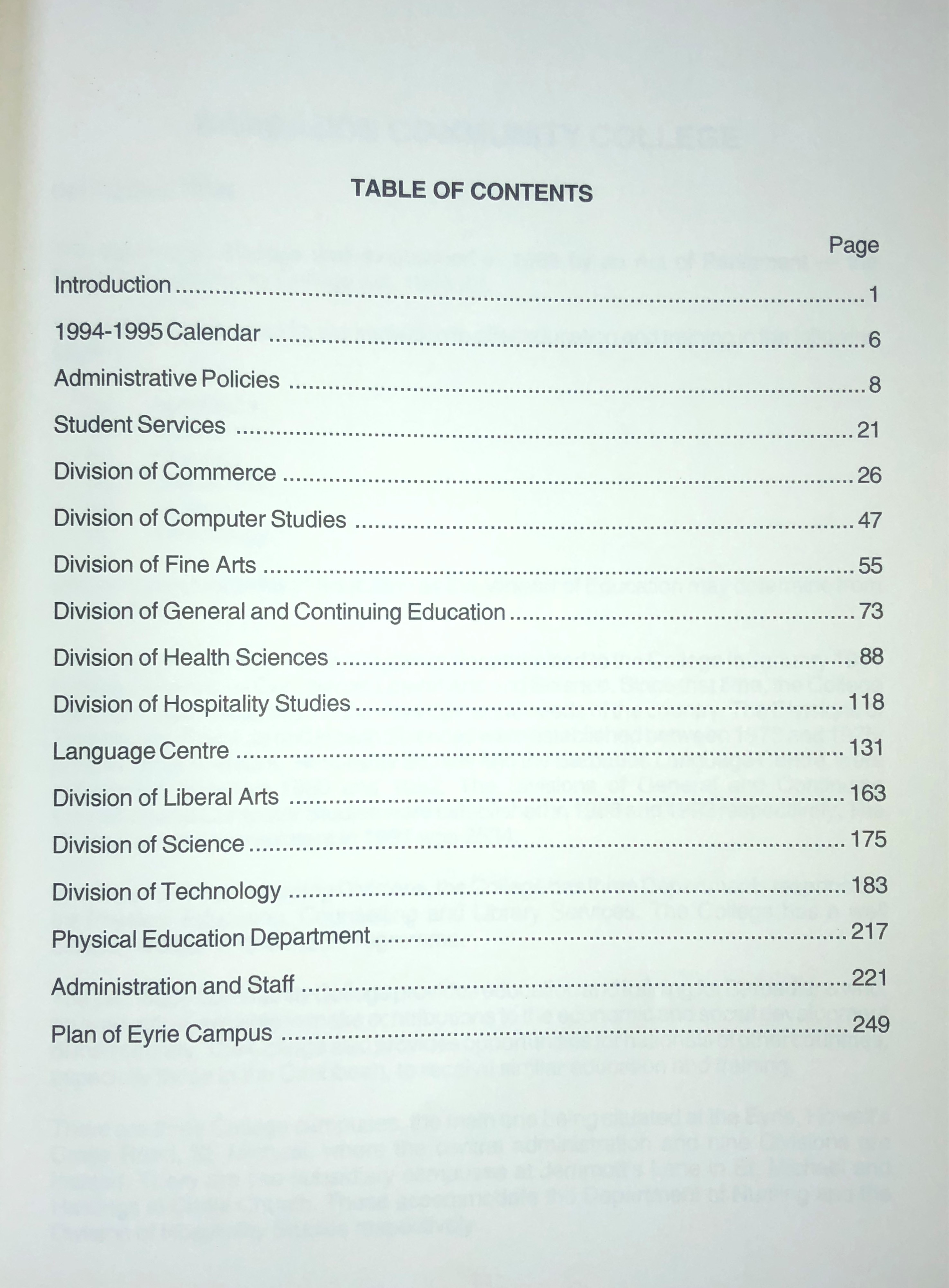 Barbados Community College calendar 1994-1995