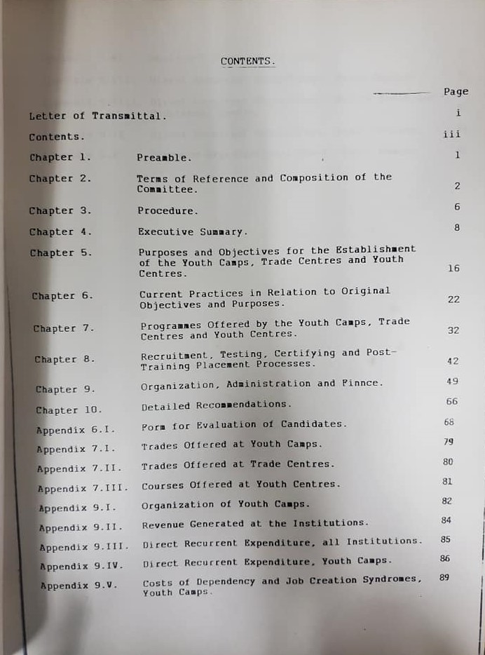 Report of the Cabinet Appointed Committee to Examine the Youth Camps, Trade Centres and Youth Centres in Trinidad and Tobago