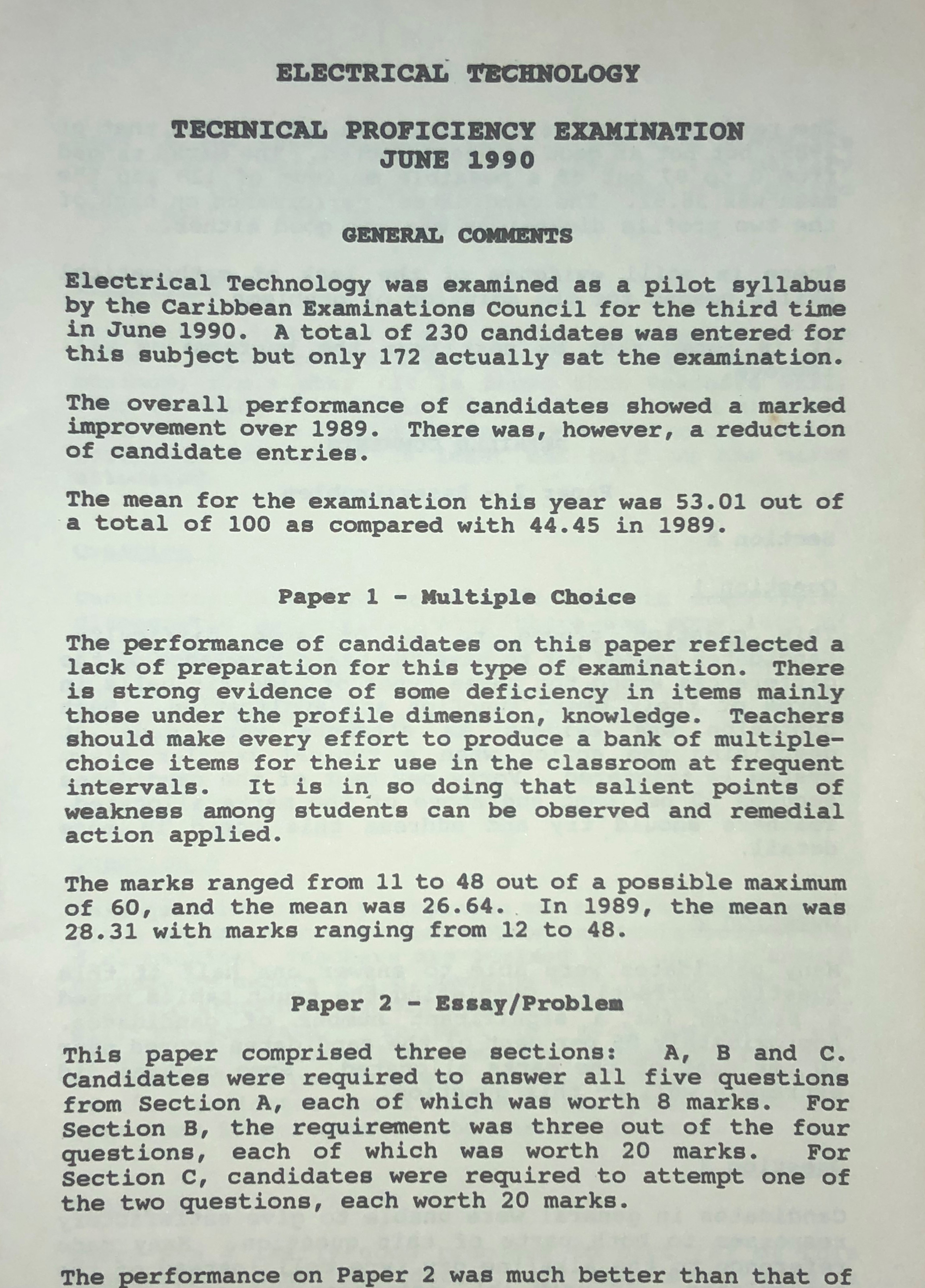 This report contains general and detailed comments on the performance of candidates in the June 1990 Caribbean Secondary Education Certificate (CSEC) technical proficiency examinations in Electrical Technology.
