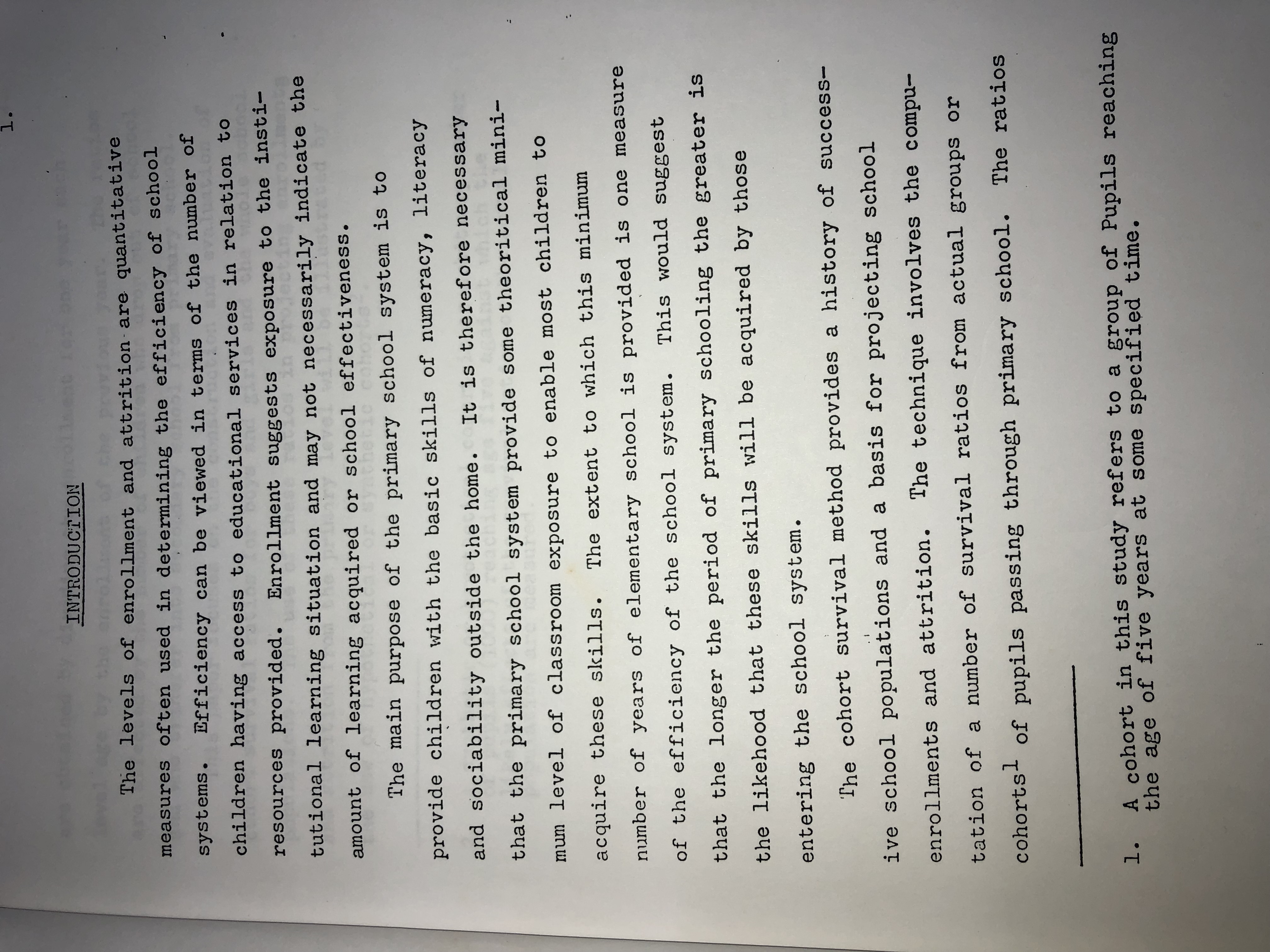 This paper focuses on the construction and evaluation of cohort survival ratios for boys and girls from the whole school population. The ratios in this study were computed from actual enrollment figures for primary schools in St. Vincent and the Grenadines between 1979 – 1983. The use of these ratios in projecting enrollments and attrition from the primary level is illustrated by the use hypothetical or synthetic cohorts.
