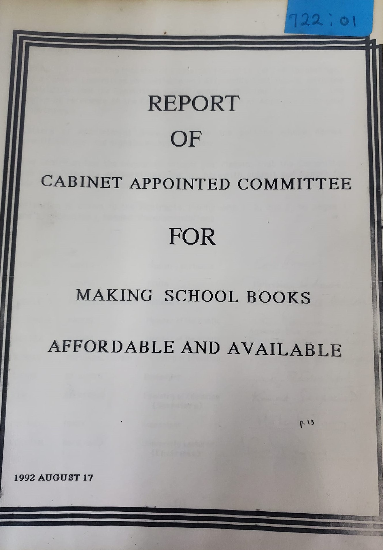 Report of Cabinet Appointed Committee for making school books affordable and available