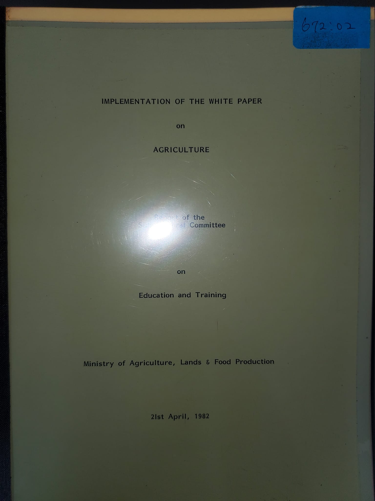 This report presents background information on the education and training sub-sector and examines general and specific proposals for its development. Apparent deficiencies, as well as areas or resource wastage are identified, and short- and long-term needs are evaluated. Some attention is given to the education and training needs of private agriculture, forestry and fisheries, and recommendations are made for the structuring of career opportunities for all levels of technical staff.