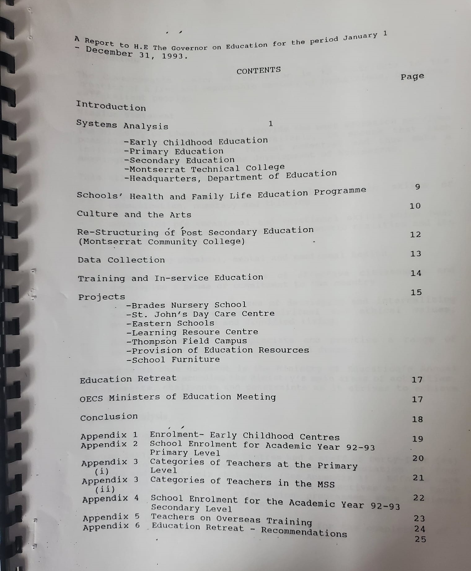 A report to H. E. The Governor on Education for the period January 1st - December 31, 1993.