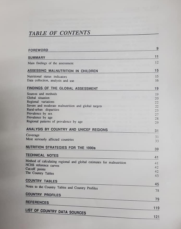A global assessment of malnutrition in children under five has been completed in UNICEF, based on data available as of January 1990. The analysis is based on nationally representative data from 76 developing countries accounting for 83% of the under-five population of the developing world, excluding China. The data, which come from a variety of sources, refer mainly to the national malnutrition prevalence in the 1980s, with half the countries having data for 1995 or later, although for a few countries data from the late seventies are used in the absence of more recent estimates.