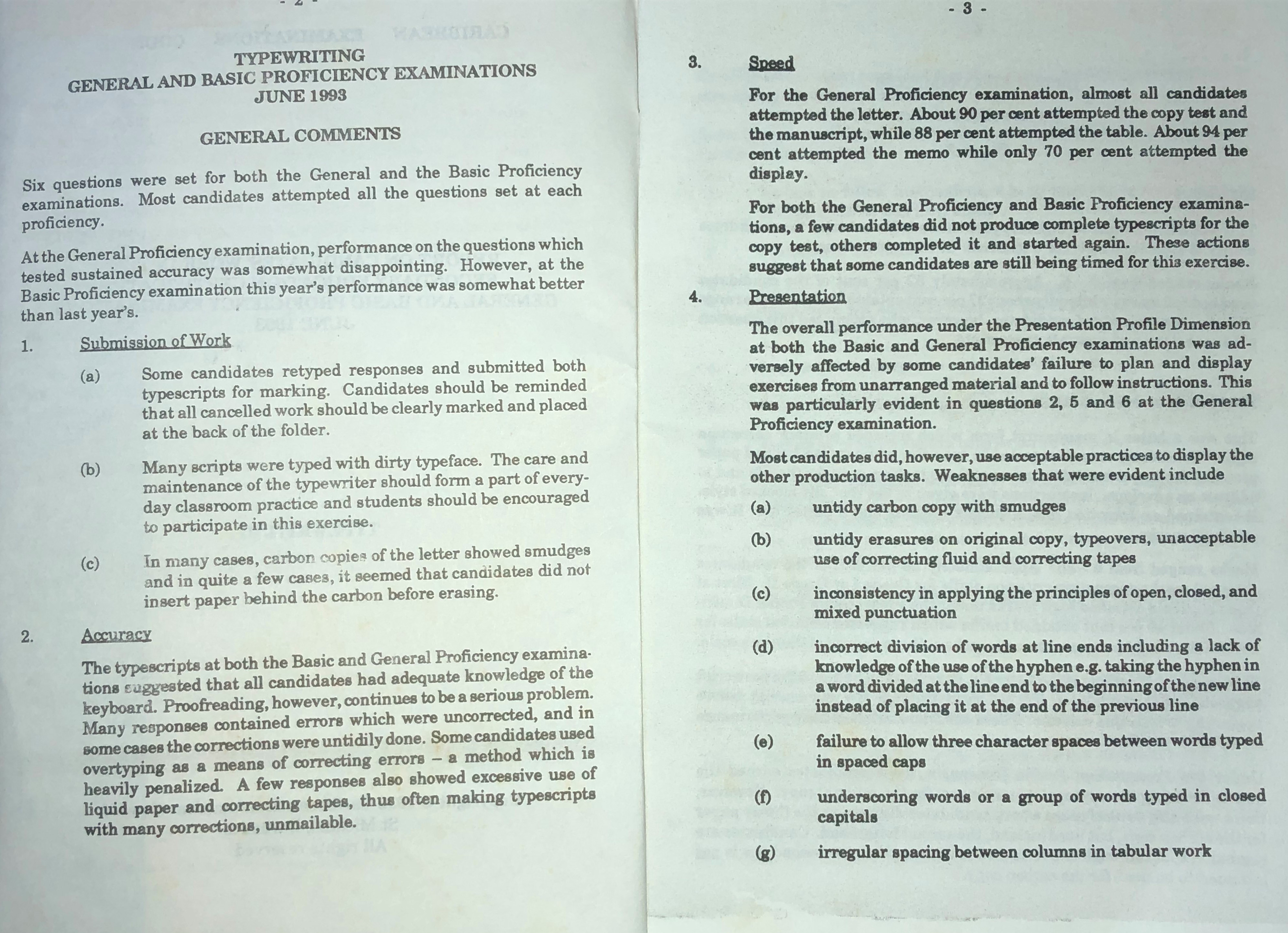 Report on Candidates' Work in the Secondary Education Certificate General and Basic Proficiency Examinations June 1993: Typewriting