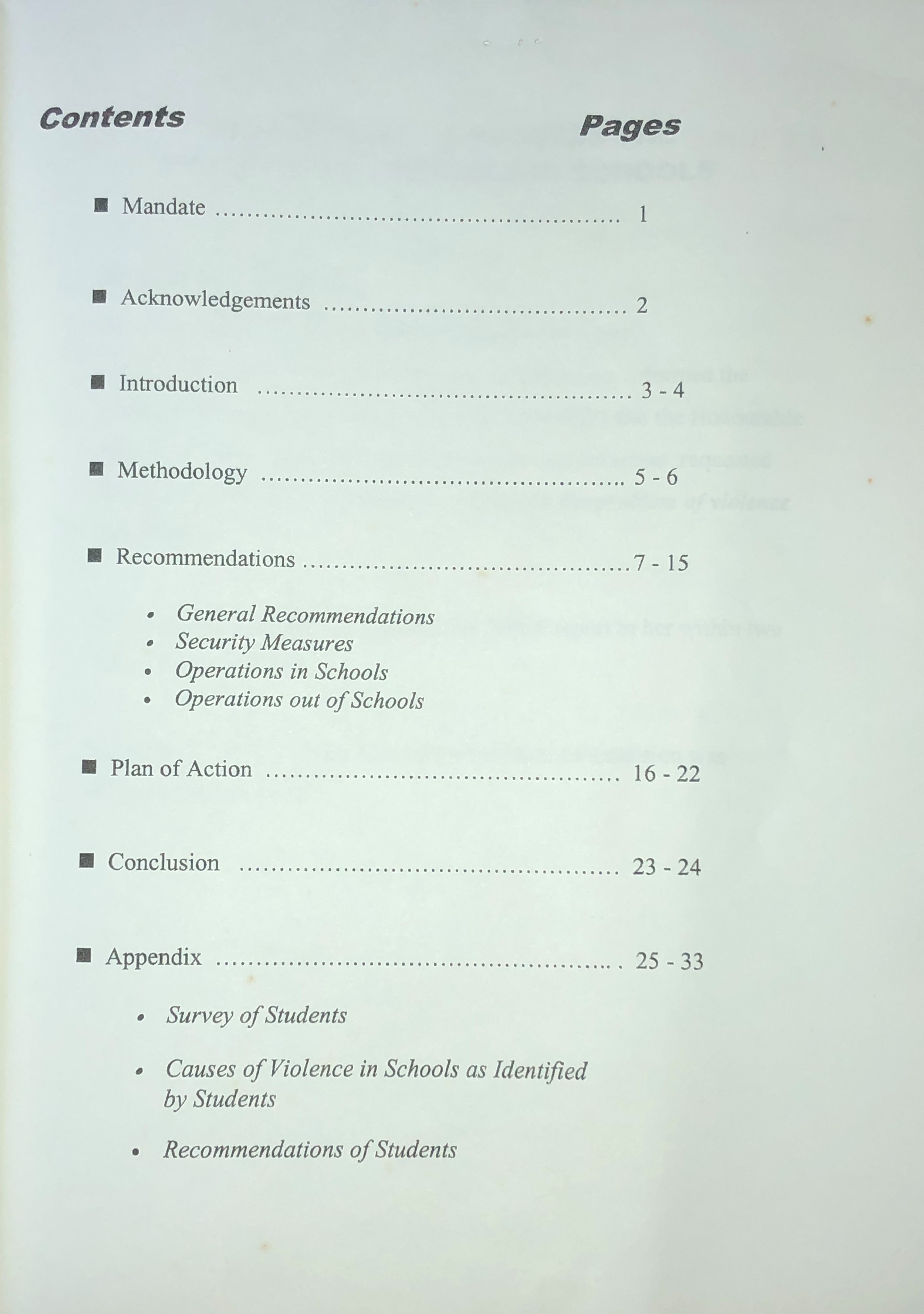 Action plan to address the problem of violence in our schools