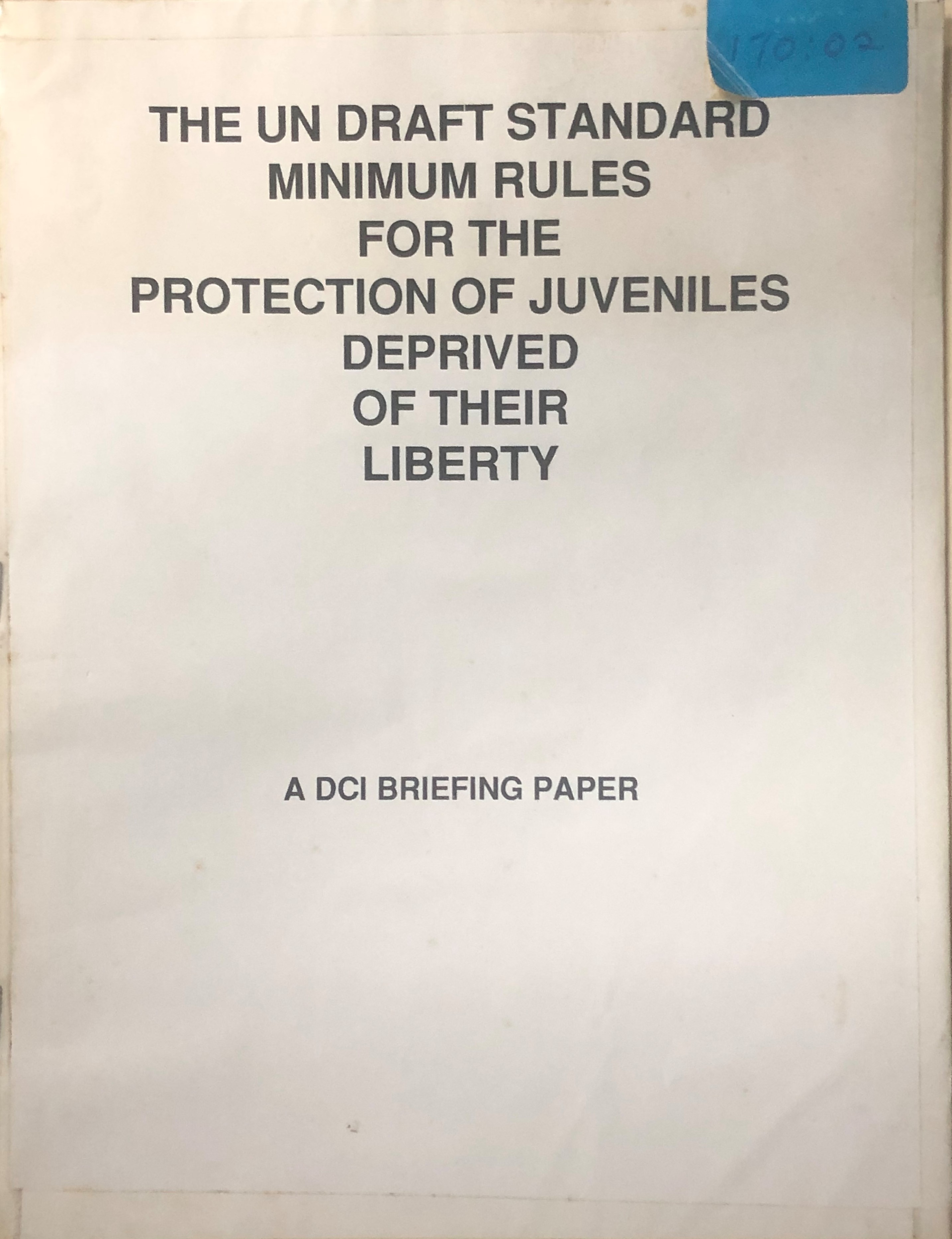 The UN draft standard minimum rules for the protection of juveniles deprived of their liberty: A DCI briefing paper
