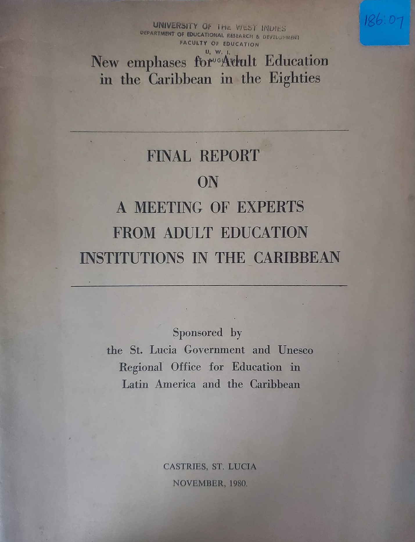 New emphases for adult education in the Caribbean in the eighties: Final report on a meeting of experts from adult education institutions in the Caribbean