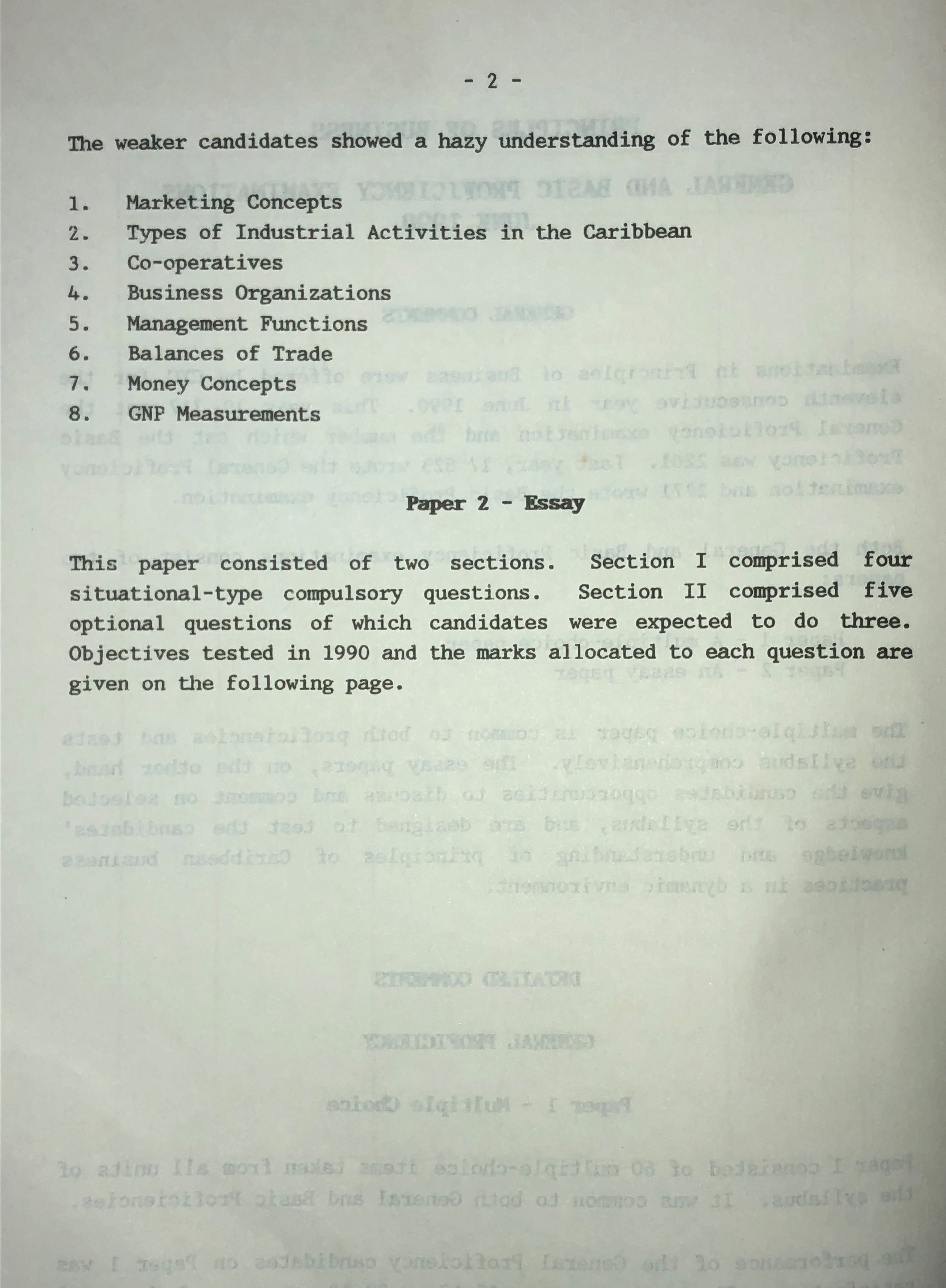 Report on Candidates' Work in the Secondary Education Certificate General and Basic Proficiency Examinations June 1990: Principles of Business