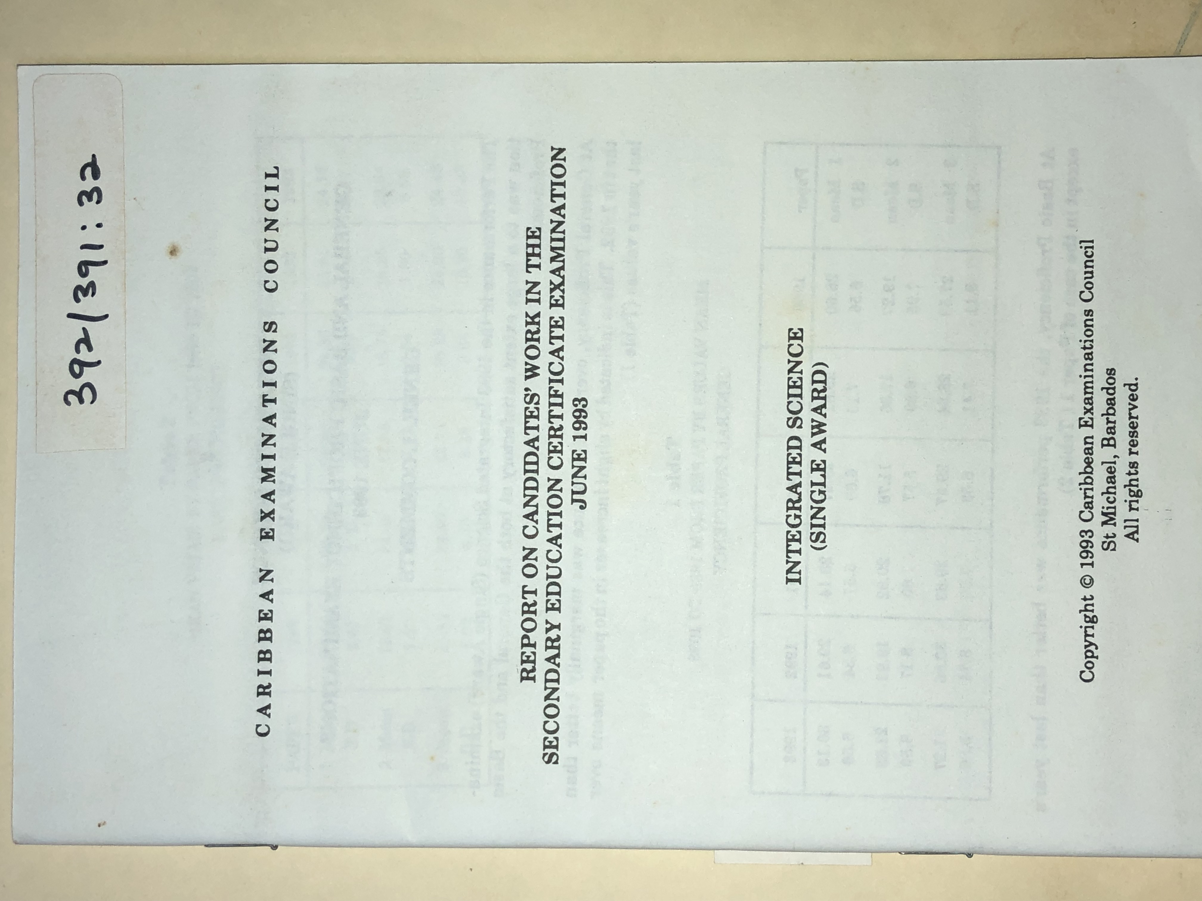 Report on Candidates' Work in the Secondary Education Certificate Examination June 1993: Integrated Science (Single Award)
