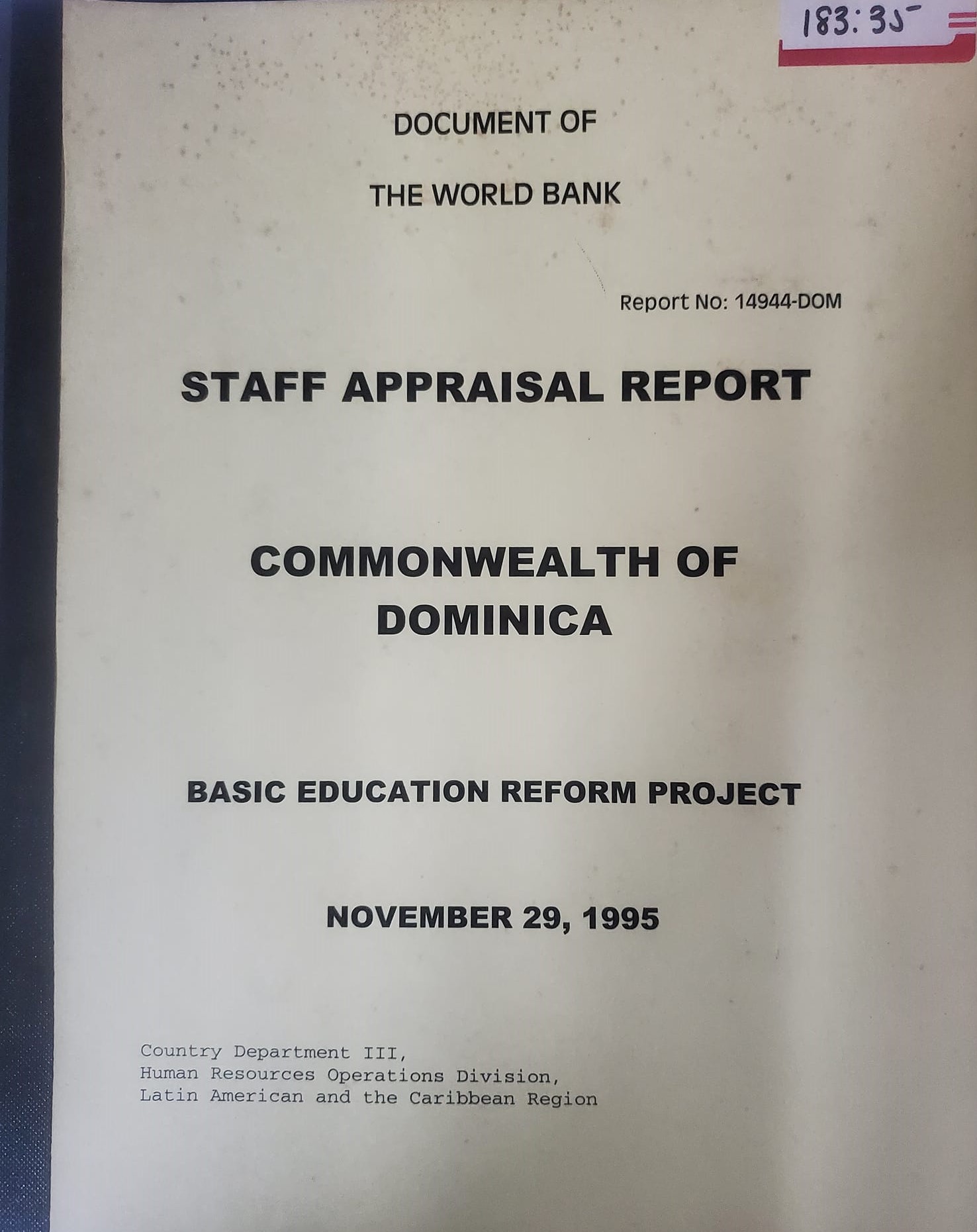 Staff Appraisal Report: Commonwealth of Dominica: Basic Education Reform Project