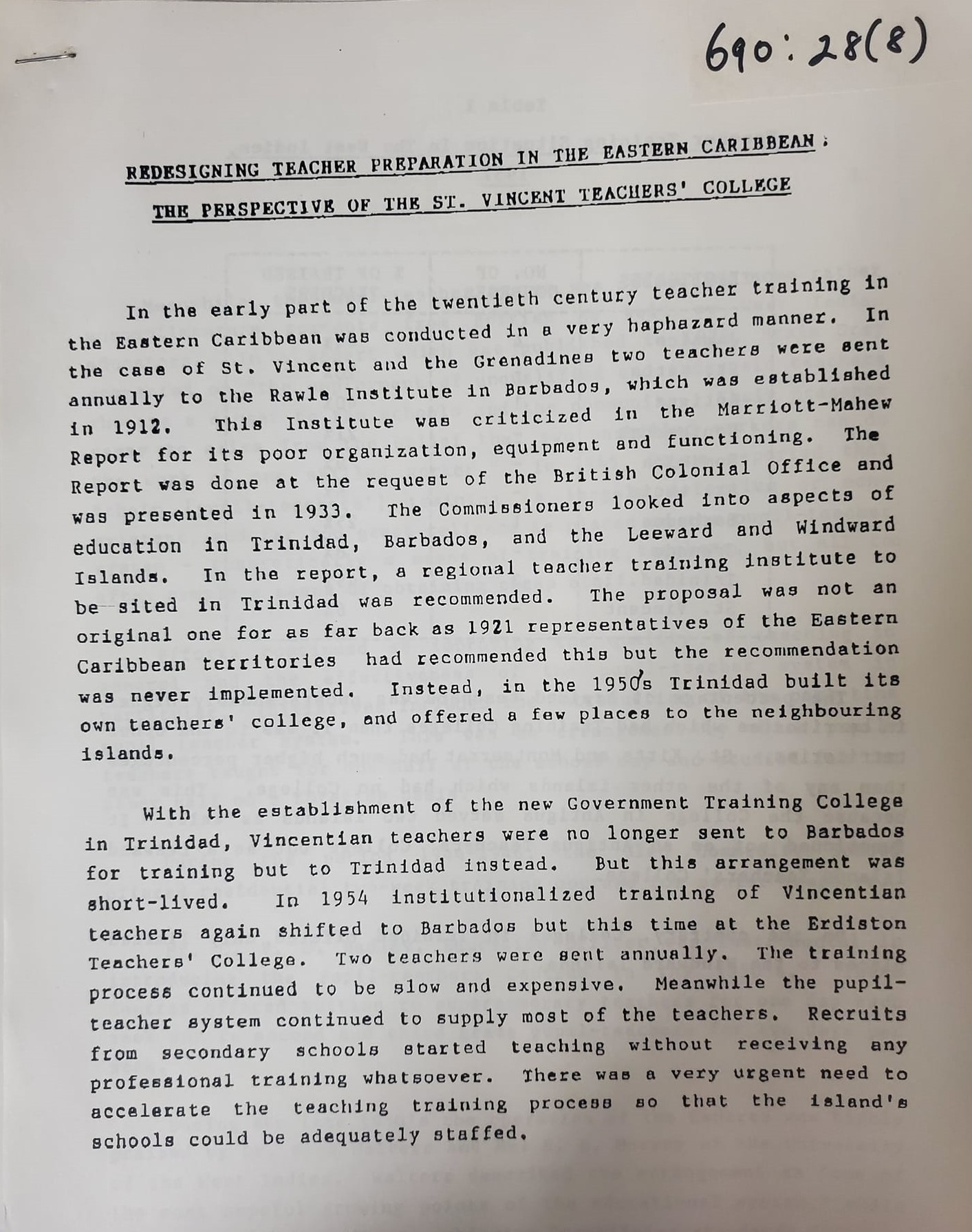 Ninth Biennial Eastern Caribbean Standing Conference on Teachers Education: Redesigning preparation in the Eastern Caribbean: Barbados December 1993