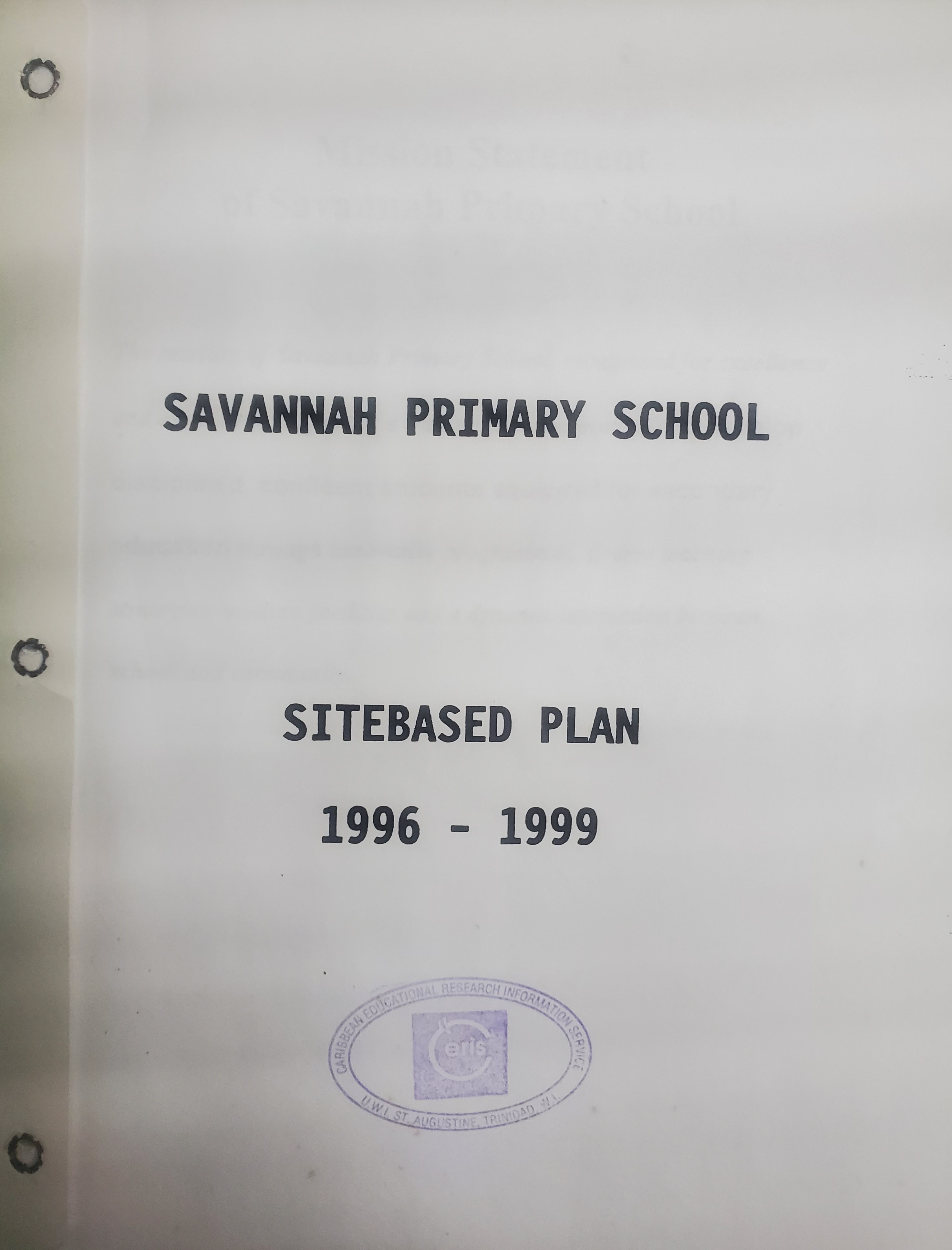Savannah Primary School: Sitebased Plan 1996-1999